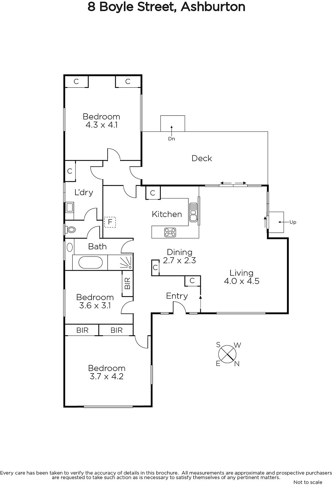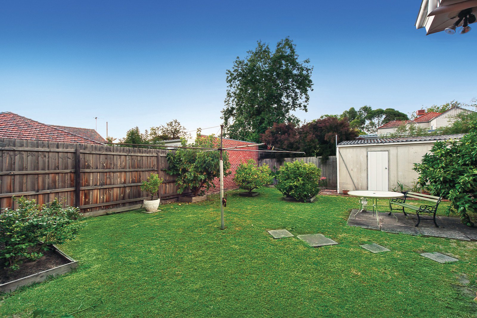 Immaculately presented throughout, high ceilings accentuate the generosity of scale in the light-filled living and dining room served by a modern kitchen boasting stone benches and a casual dining area. Surrounded by floor to ceiling glass, the living spaces open to a large covered deck and the private sunny garden planted with fruit trees. Three superbly proportioned bedrooms with built in robes are accompanied by a smart bathroom.