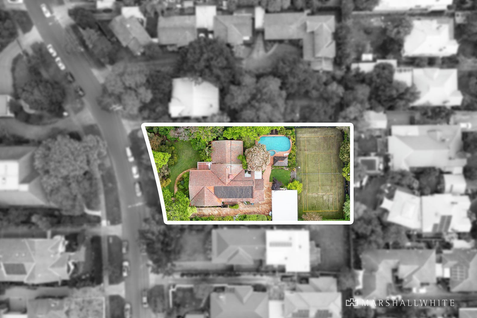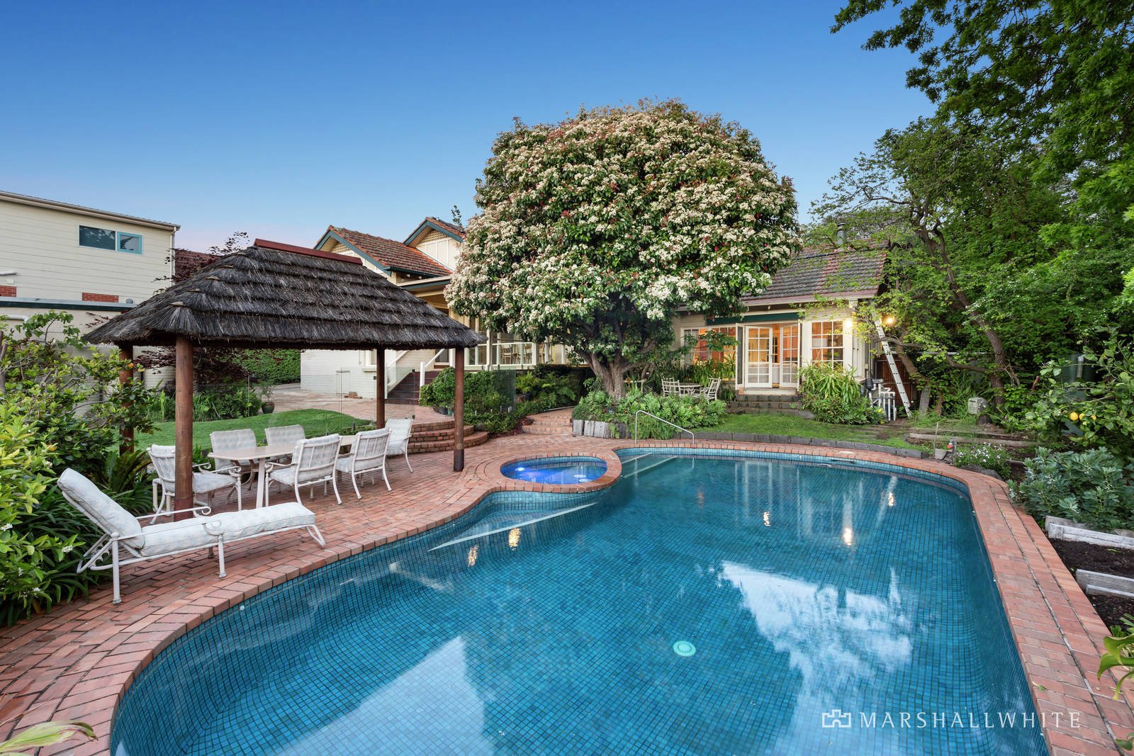Cherished and renovated by the one family for more than 40 years, it's ideal to enjoy now while also offering scope to further update in the future or build a new substantial multi-dwelling development (STCA). High ceilings create a sense of space in the welcoming entrance hall, gracious sitting room with a gas fire and elegant formal dining room overlooking a tranquil water feature. The expansive timber lined living room features a built in bar, Coonara wood heater and slate floored wine cellar with capacity for 560 bottles. The gourmet granite kitchen and conservatory style casual dining area open to the deep private north-west facing garden with the picturesque solar heated pool and spa, entertaining terraces, the mod grass tennis court and a triple garage with storage. The four double bedrooms with built in robes and a home office or 5th bedroom are accompanied by two stylish bathrooms.