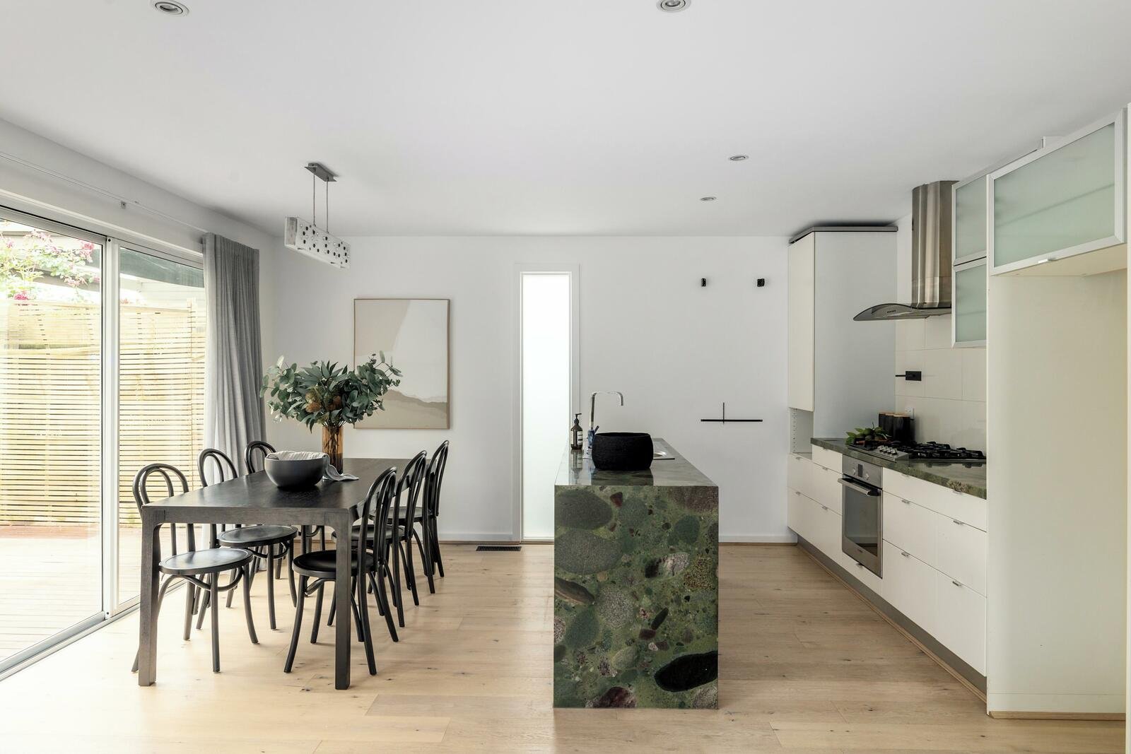 Nestled amidst idyllic Yarra trails, pristine parks, and vibrant lifestyle hubs, this charming double-fronted Edwardian residence has been tastefully updated to enhance its timeless appeal. The classic façade is adorned with leadlight windows, while inside, high ceilings and a cleverly positioned skylight bathe the inviting entrance hall in natural light.