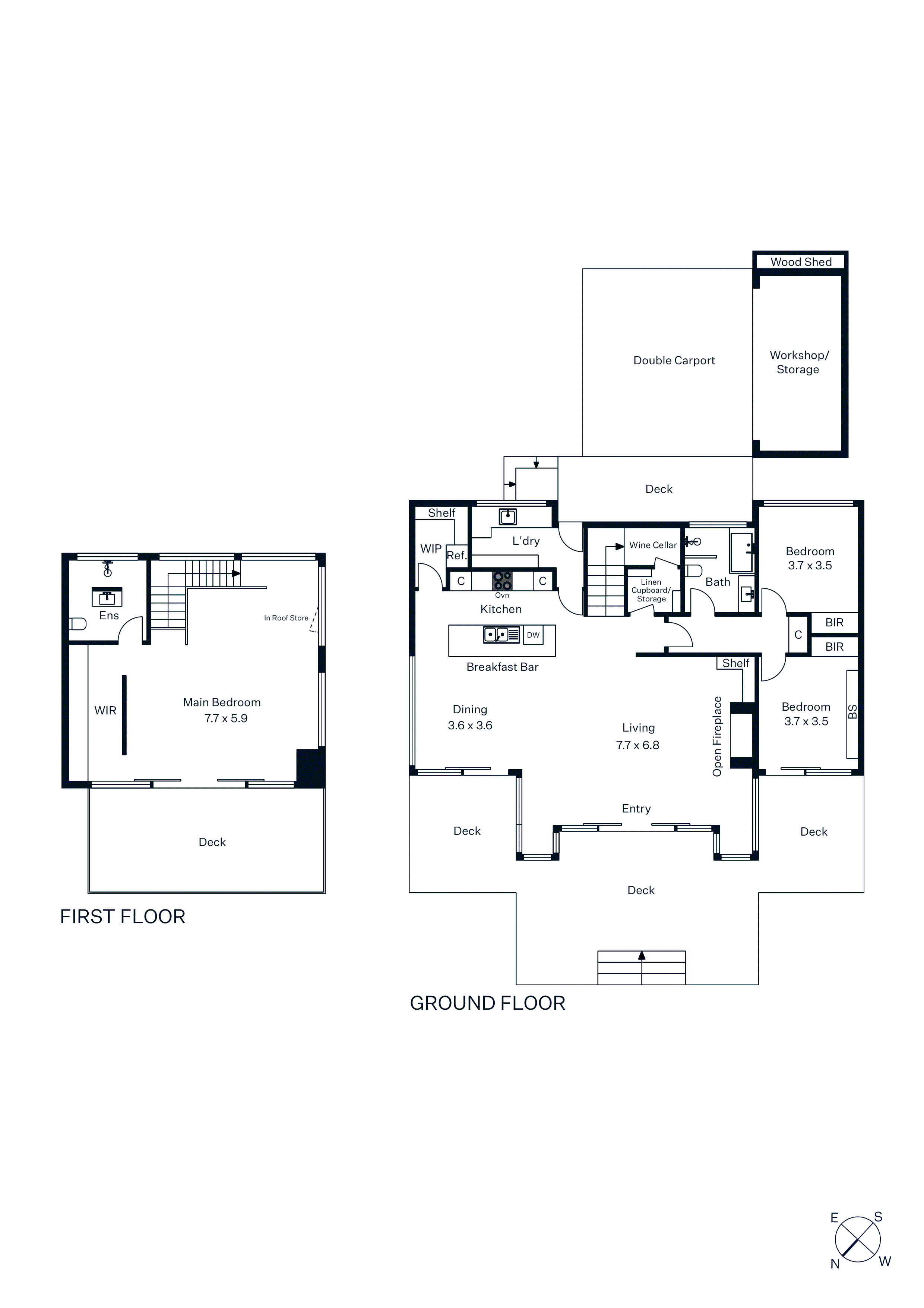 Surrounded by full-height glass sliding doors, fitted with automated blinds, the light-filled lower level main living space features polished timber floors and an open fire place set in stacked-stone feature surrounds, while the natural materials palette continues in the central kitchen with stone-topped benches and solid timber custom cabinetry. Well-equipped for gourmet entertaining with a Miele induction cooktop, Baumatic oven and Asko dishwasher, the adjoining walk-in preparation pantry, with fridge space adds to the amenity, as does an under-stair wine cellar. With access from the rear alfresco deck and double carport, the laundry/mud room, with built-in shoe storage and coat/bag hooks, enhances everyday functionality for family living or when hosting guests. There are two robed bedrooms on this level, one with private deck access, and a terrazzo tiled bathroom with built-in tub and walk-in shower. Upstairs is the master domain, comprising a second living room, study space, walk-through built-in robes and a shower ensuite. Here the panoramic Peninsula views are mesmerising, incorporating the waves breaking along the Back Beaches, and spanning around to the Bay and the City skyline.
