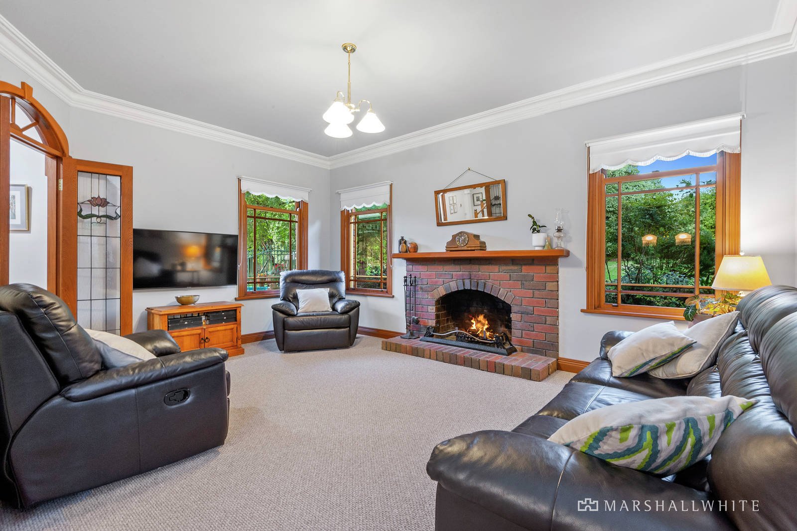 A sophisticated blend of living and accommodation cascades across the double storey design, where lead-light details and timber features work together to deliver a warm atmosphere throughout both casual and formal entertaining zones. Backdropped by the flickering of an open fireplace and stunning garden aspects, a formal living and dining builds upon a casual family domain inclusive of a renovated kitchen with stone benchtops, high-end cooking appliances and a casual living and dining zone. Ensuring a seamless fusion between indoor and outdoor living, the covered alfresco area with in-ground spa spills to an immaculate lawn elevated by evergreen hedges and softened by eclectic blooms and established vegetable gardens, making for a wonderful family-friendly space.