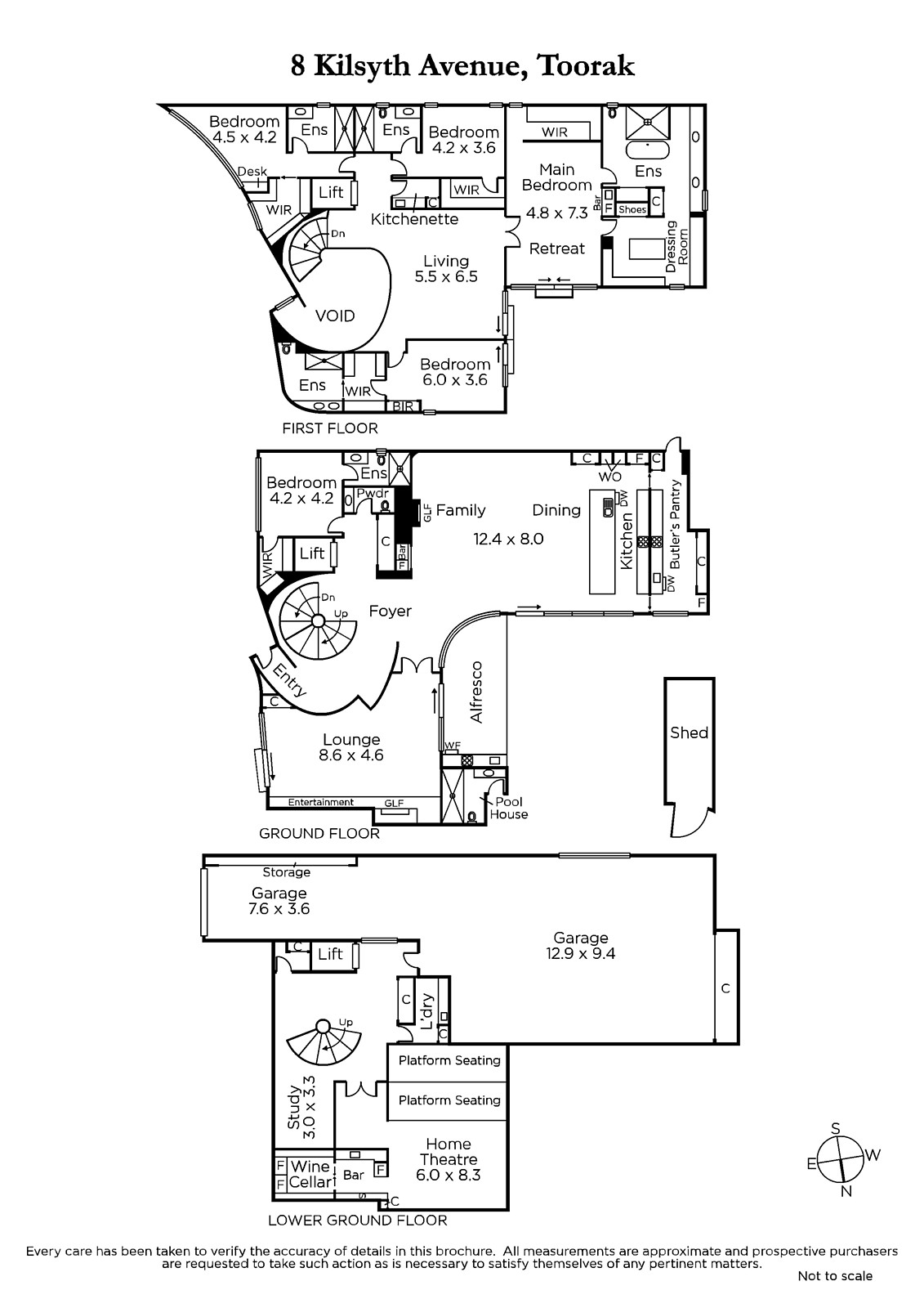 A curvaceous architectural facade commanding the street appeal of Kilsyth Ave is the first sight which captures you. Greeted by a secure private and elegant walkway leading you to a double height door is an experience in itself. The entry foyer with soaring voided ceilings and triple level circular staircase captures your eye and the venetian plaster walls complement the Italian Travertine floors throughout. With formal and informal living areas, open plan kitchen and living with scullery and seamless indoor/outdoor living there is no detail missed. The outdoor entertaining area is low maintenance and undercover with kitchen, 6th bathroom, lawn and stunning 8m north facing pool. Downstairs you'll find a pristine 5 car garage, office, cinema, bar, laundry and lift. The top floor houses the third lounge area, 4 of the 5 bedrooms, all of which include private ensuites and the master being palatial in size with 2 separate walk in robes, lounge area and double shower. Land: 863sqm approx.
