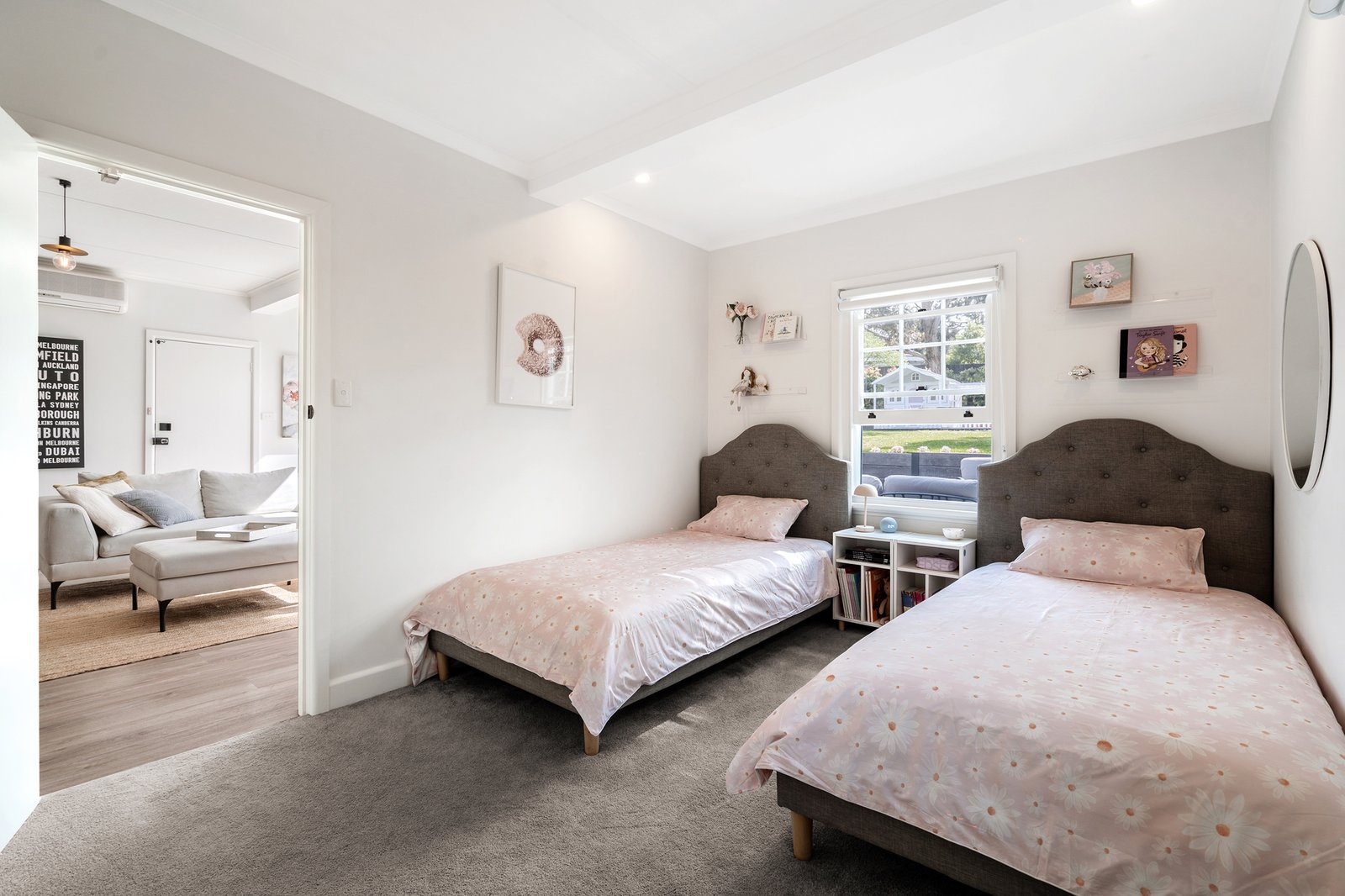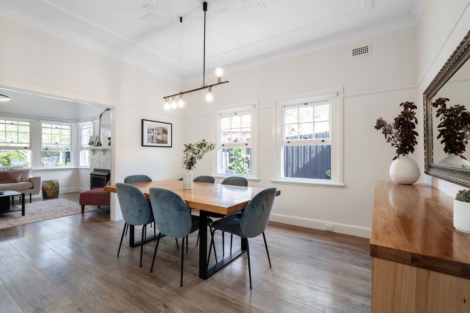 Welcome to 'Sandhurst', a stunning 3-bedroom home that beautifully blends period charm with contemporary elegance. This meticulously maintained residence showcases intricate ceiling mouldings, original picture railings, and a classic fireplace in the formal lounge, all while offering modern comforts and stylish updates. Flooded with natural light that highlights the lush landscaping visible through large North-West facing windows, this home offers a perfect balance of character and contemporary living.