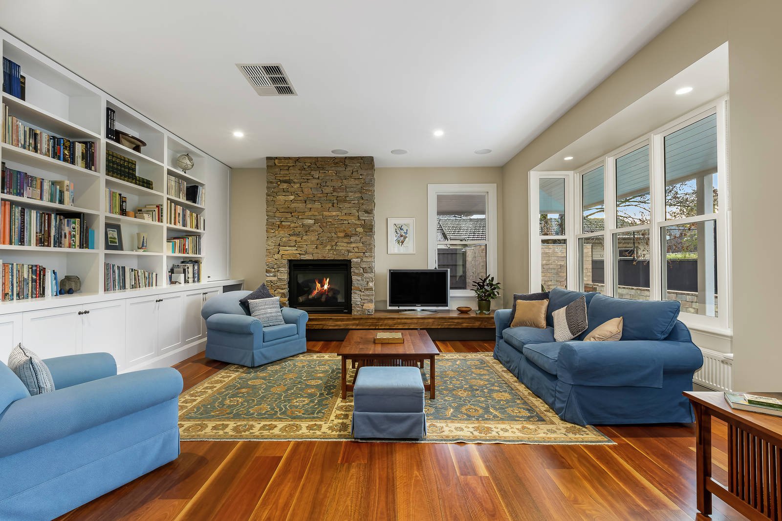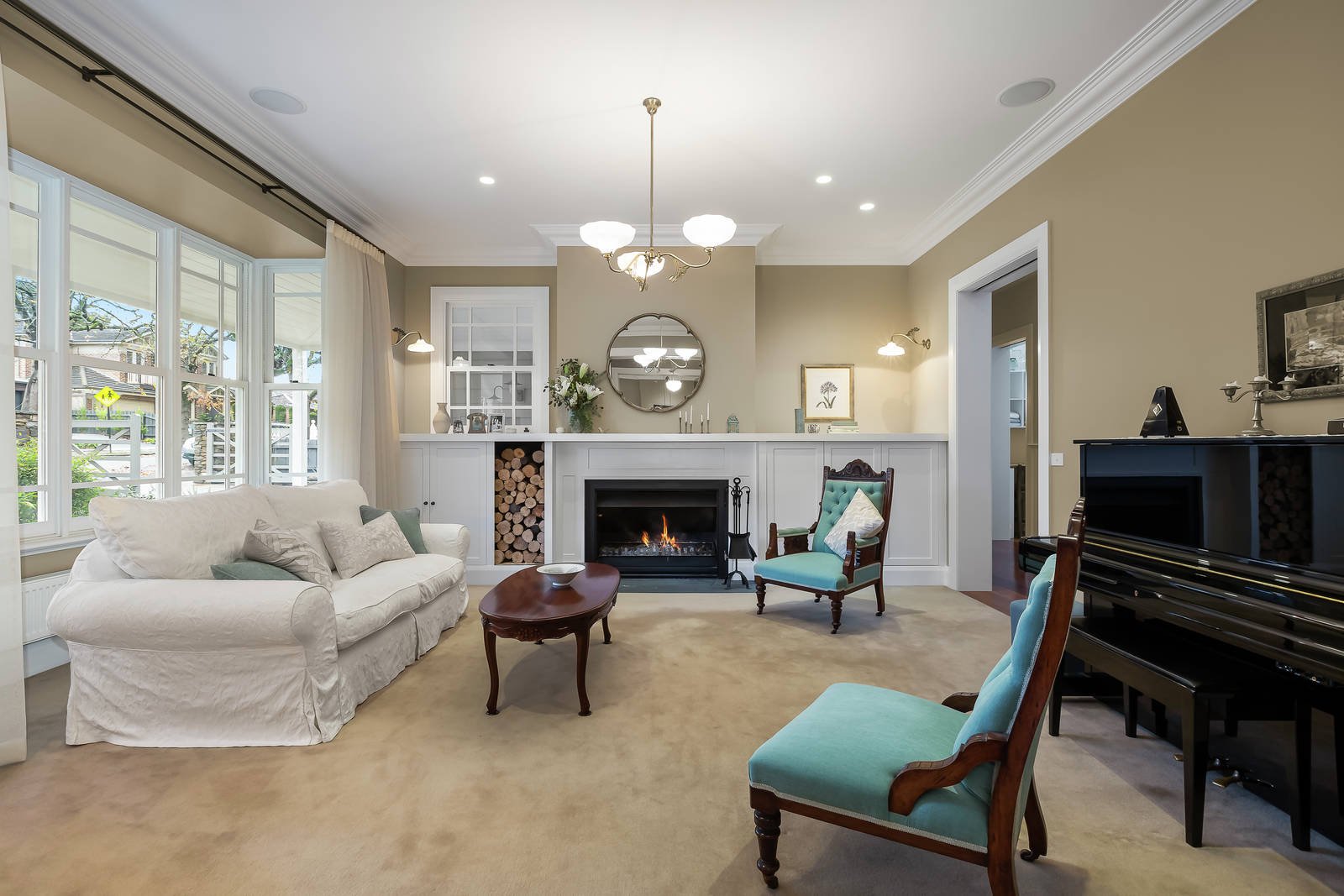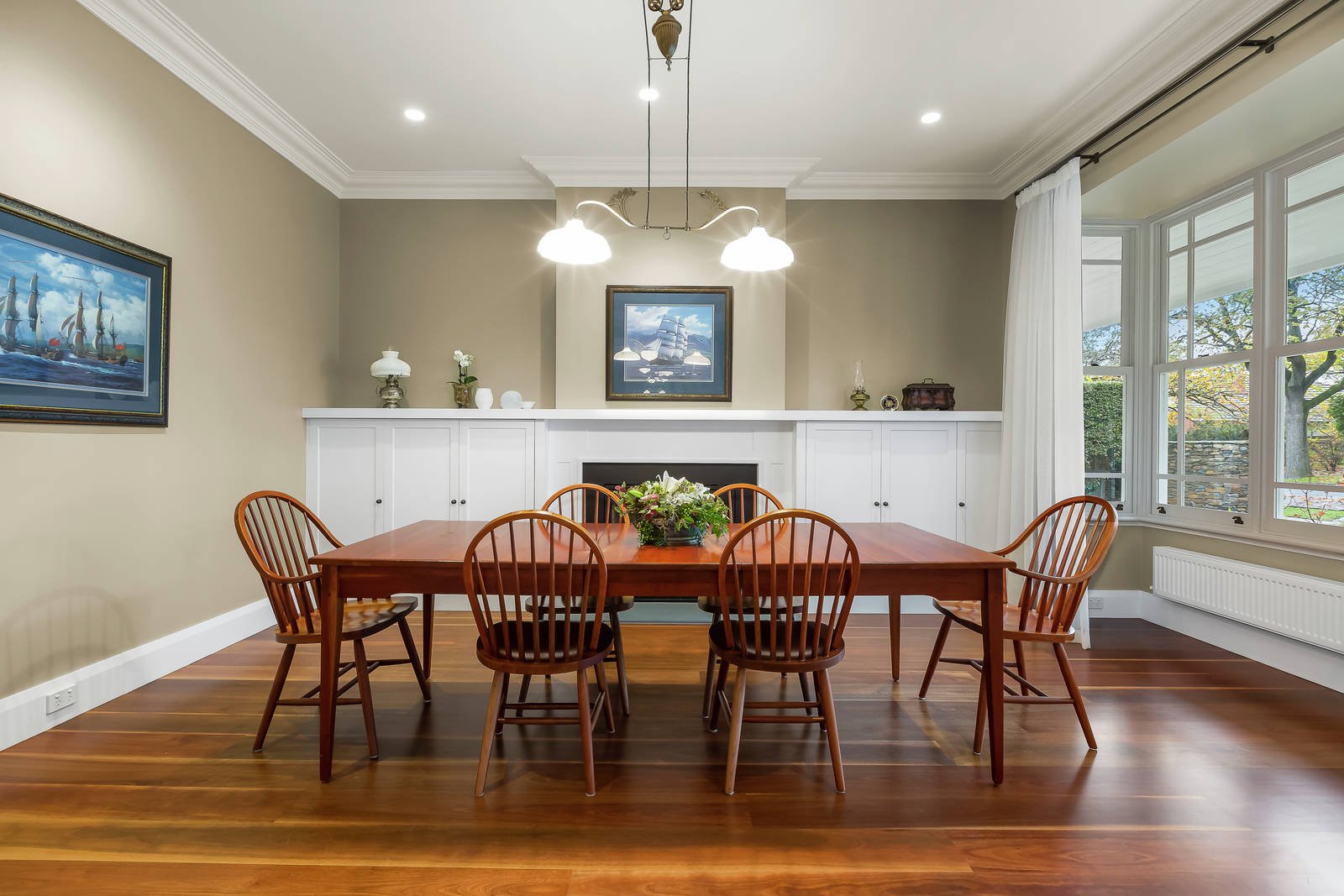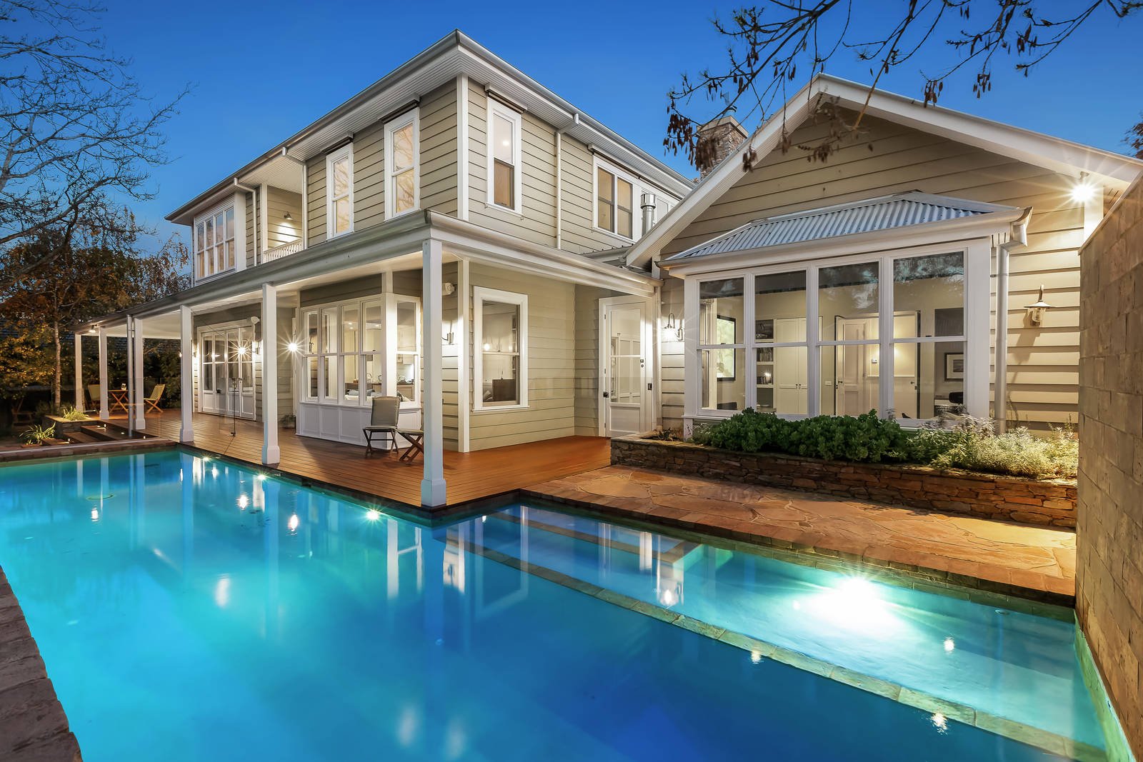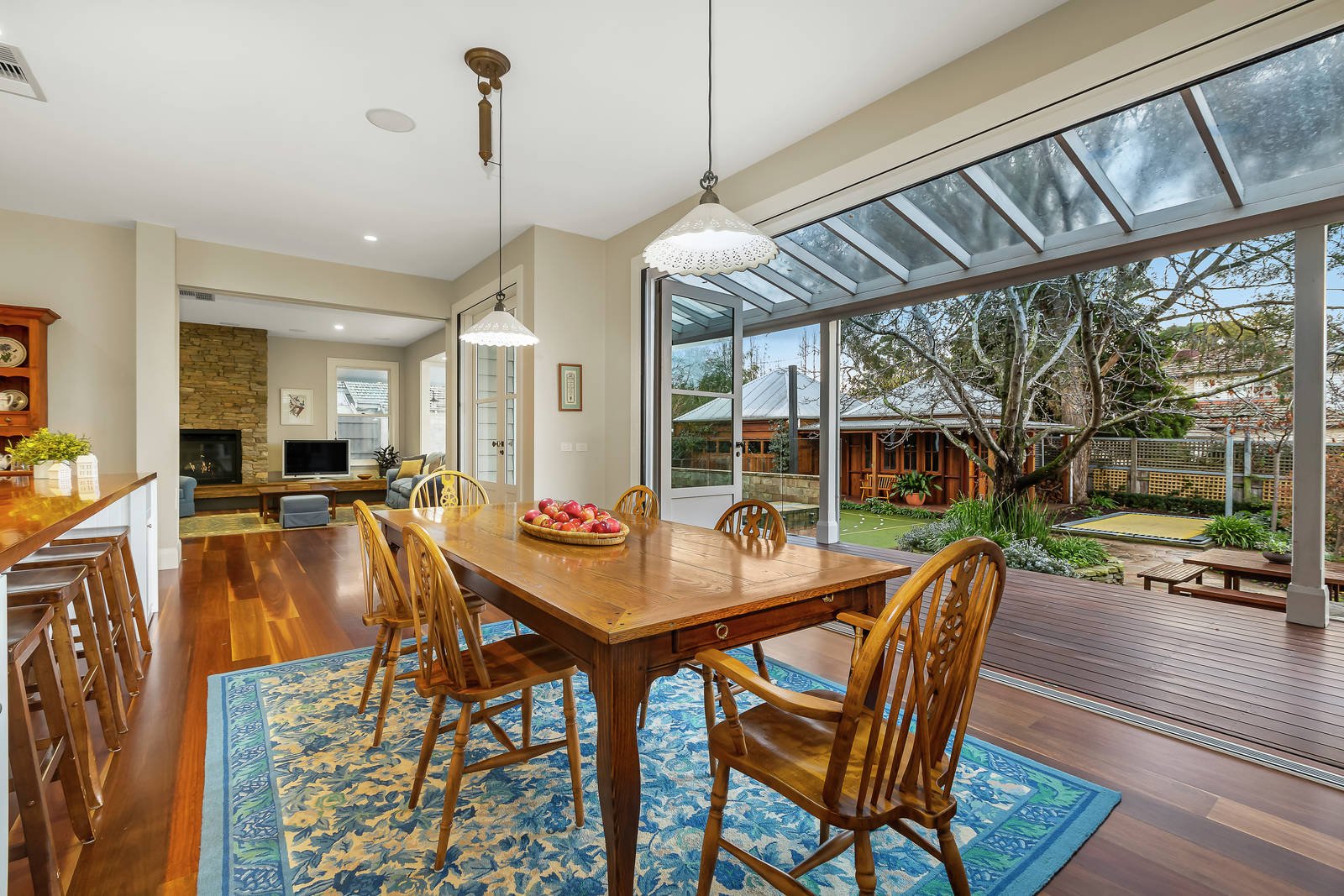 The irresistibly appealing street presence is matched by interior dimensions that are defined by classic contemporary elegance and a wonderful generosity of scale. The wide central reception hall introduces a gracious sitting room with a roaring open fire and elegant formal dining room with a 2-way gas fireplace shared by a refined fitted library or study. Spotted Gum floors flow through the expansive living room with a gas fire, light-filled family dining area and a gourmet kitchen boasting stone and timber benches, Smeg appliances, a bar fridge and a fitted home office. Bi-fold doors open the living area to a large covered entertaining deck overlooking the glorious north-facing garden with picturesque heated self-cleaning pool, mod-grass sports court, in-ground trampoline and a rustic timber workshop or studio. An abundance of brilliantly zoned accommodation comprises a lavish main bedroom with walk in robe and designer en suite and a fully appointed media room or guest bedroom with bathroom downstairs, while an upstairs children's zone incudes five double bedrooms with built in robes and desks, a stylish bathroom, balcony and billiards room/retreat.