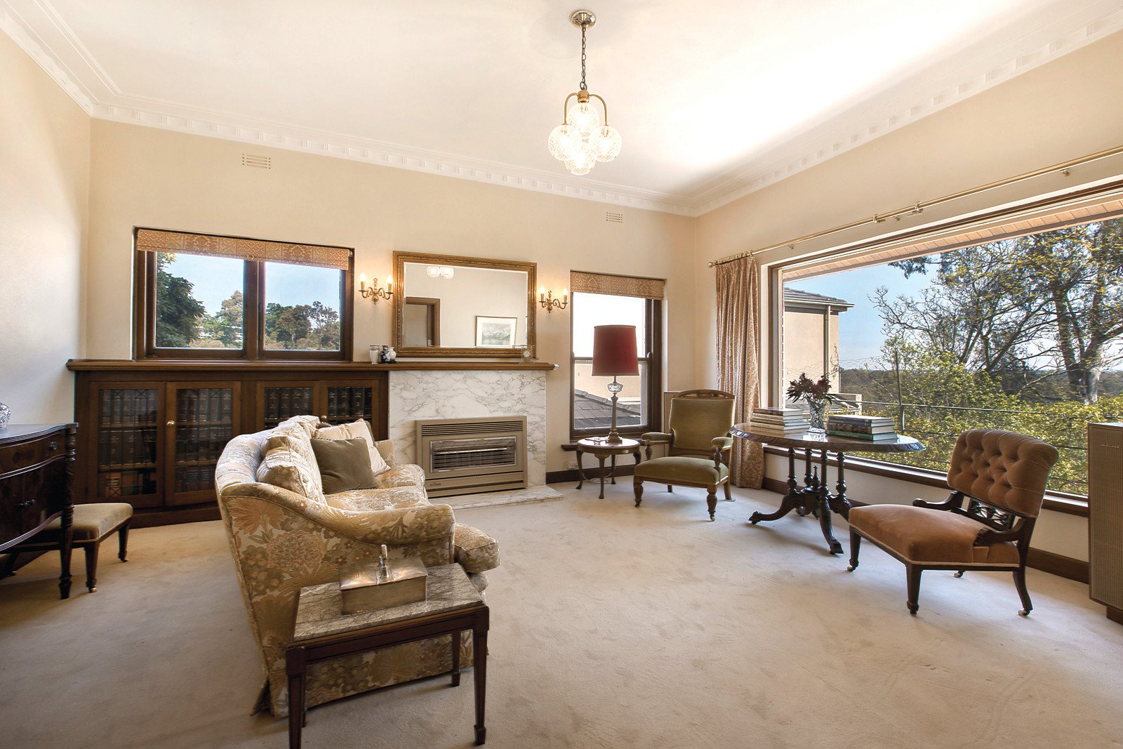 Highlighted by leafy vistas to the north of the surrounding trees plus astonishing views across Studley Park and Yarra Bend Golf Course it offers a sublime living environment. Enhanced by period features including diamond leadlight, coloured glass windows and stained woodwork, the interior comprises entrance hall, lower level study, home office or potential cinema, formal dining and sitting room with gasFP, modern timber kitchen/meals with Miele stove and floor-to-ceiling windows opening to the rear terrace and garden, an adjacent laundry and external powder room. Complemented by a downstairs main bedroom with WIR and bathroom plus three upstairs bedrooms and a period-style family bathroom. Other features include hydronic heating, R/C air conditioner, water feature and remote double garage with rear access.