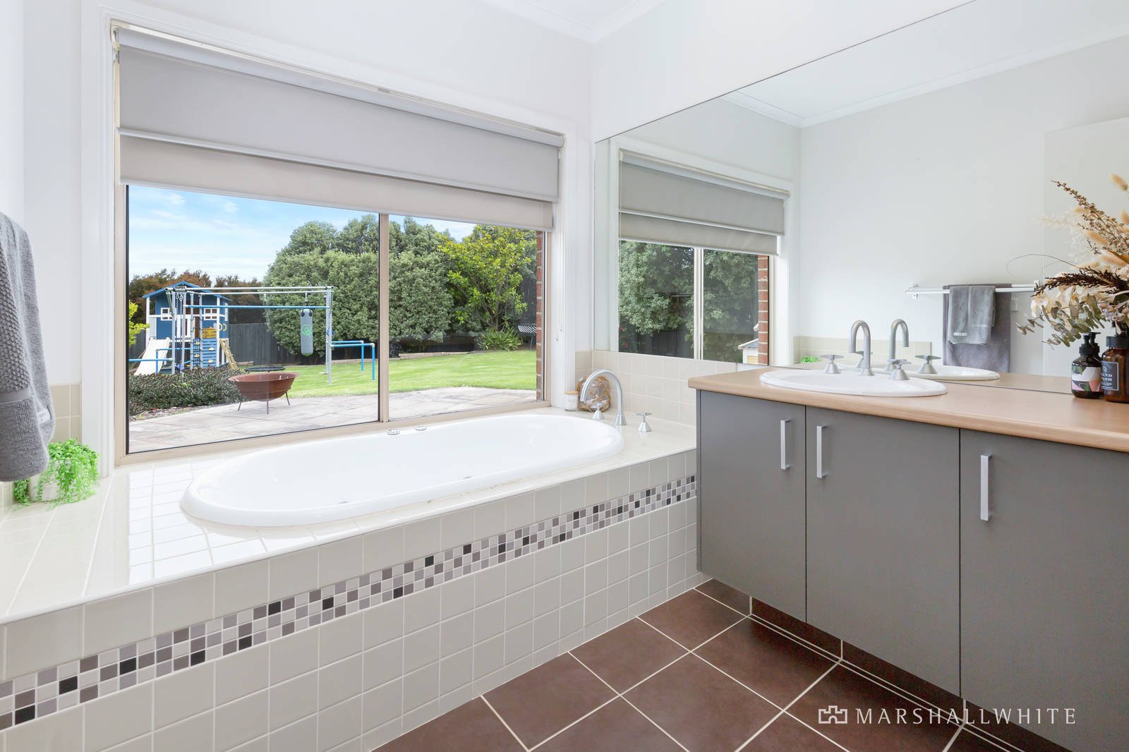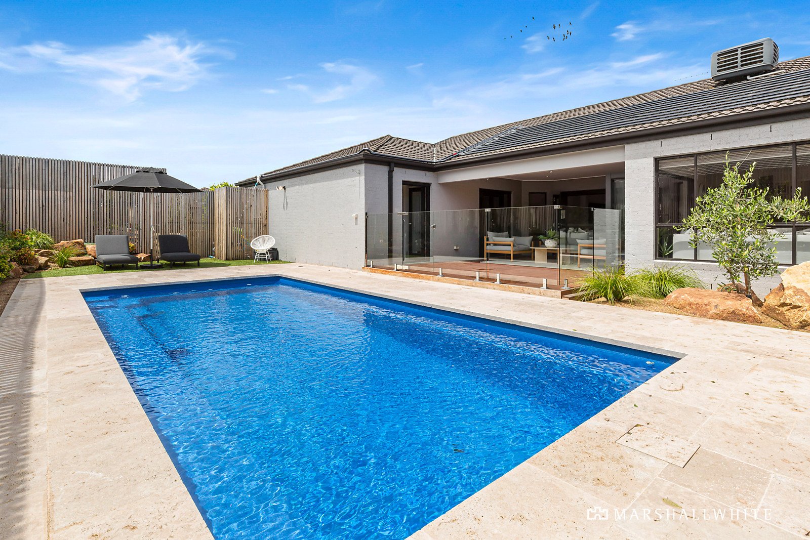 Three additional bedrooms (BIRs), centralised main bathroom with sunken spa, powder room and generous laundry with rear access, completes the internal floorplan.
