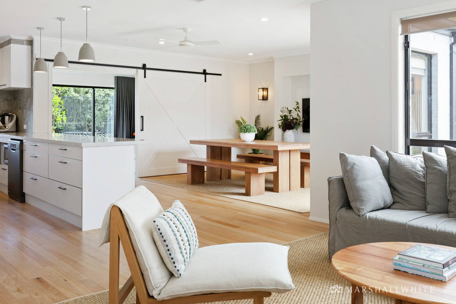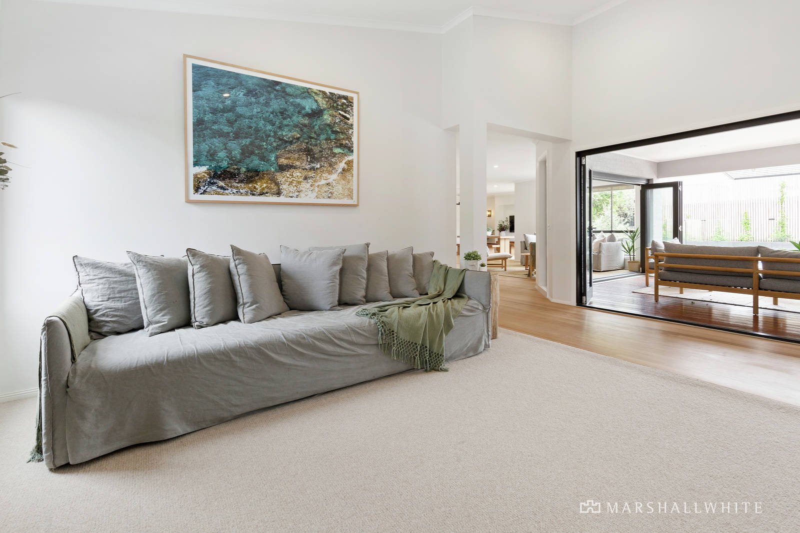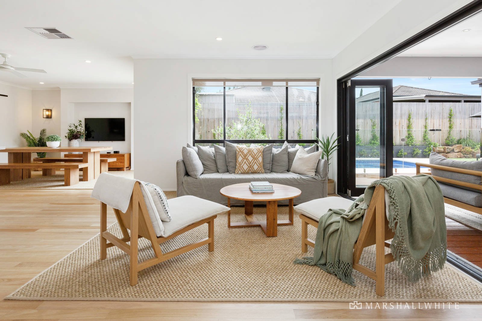 A refined approach to design, complemented by warm textural elements and cool neutral hues, together with the consideration of space, light and large-scale proportions, curates a seamless fusion between indoor and outdoor environments, welcoming a journey of exploration from front to back.