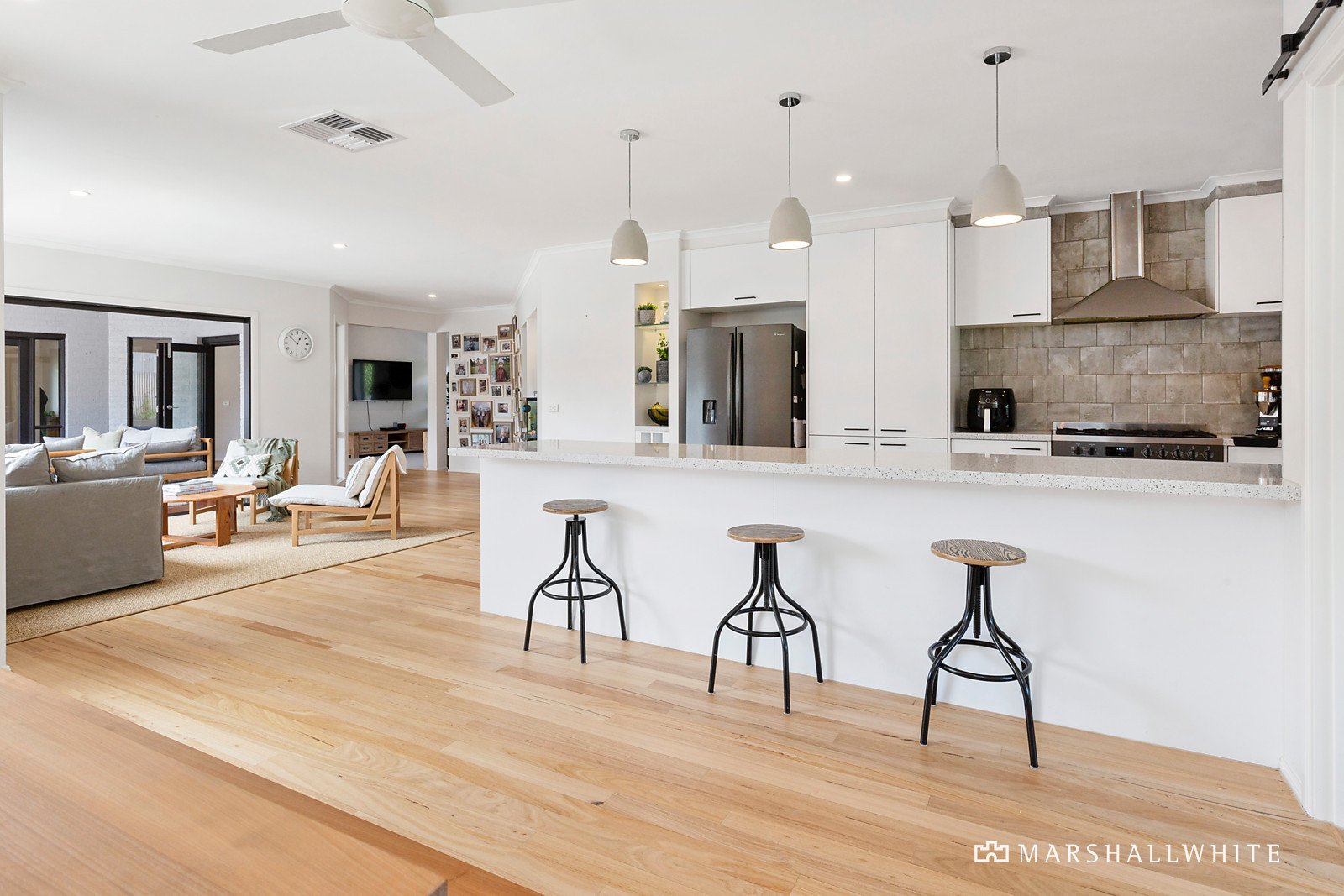 Spilling beyond glass stacker doors, the private rear surrounds complete with luscious perimeter hedging and striking feature fencing nurtures an exclusive oasis, while a hidden fernery and Wisteria-drenched arbour allures with further appeal.