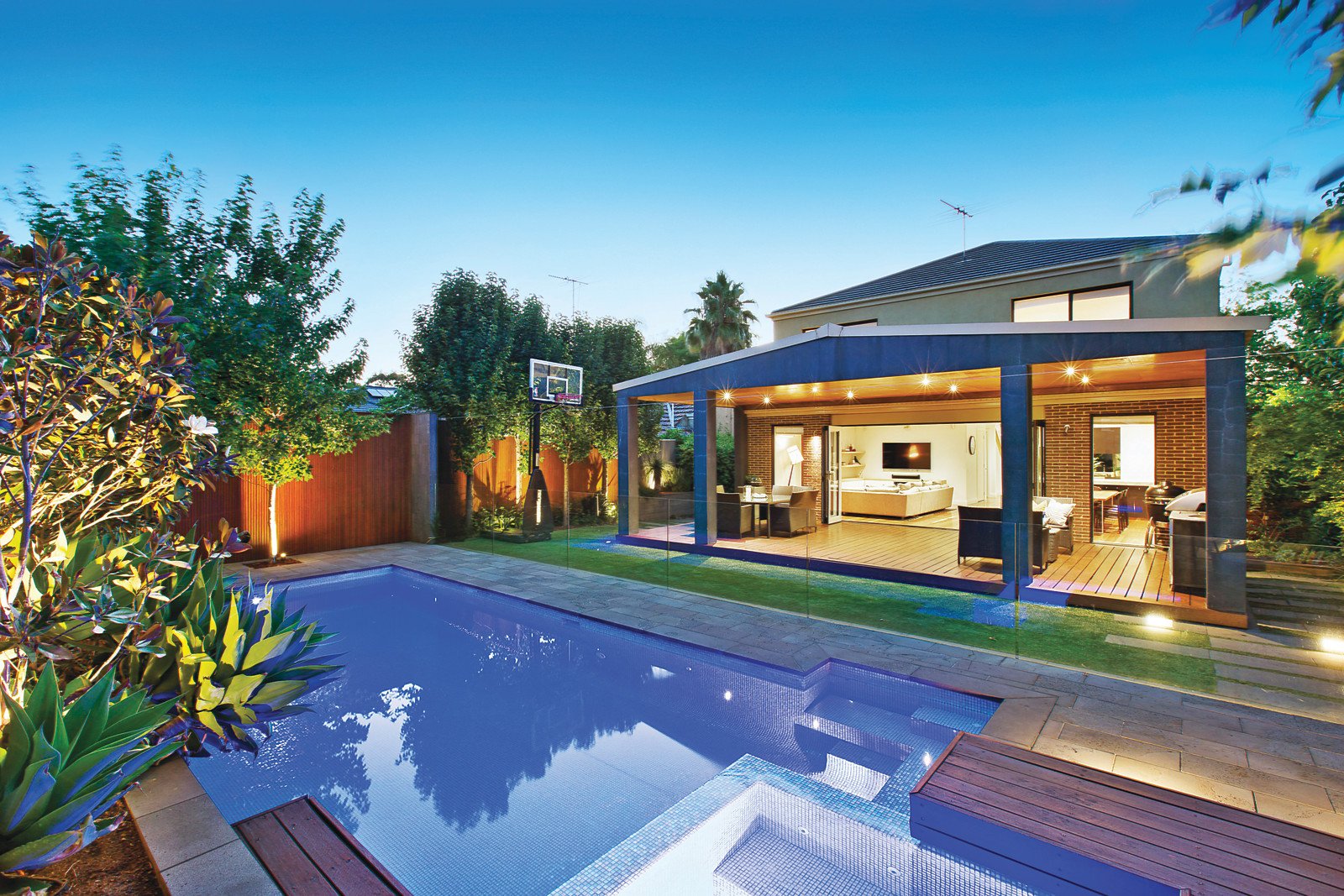 Enhanced by a clean lines and a striking Daniel Robertson half brick and rendered façade preceding a flowing floor plan with spotted gum floorboards in the hallway flanked by a combined sitting and dining room, powder room and laundry with ample storage through to an extensive family lifestyle domain. Including a newly renovated gourmet prestige Euro kitchen with stone benchtops, island bench and American Oak joinery plus dining and informal living; opening through bi-fold doors to a stunning covered entertainers deck overlooking a remote controlled, gas/solar heated pool and spa in a lush and private rear garden with night lighting. Whilst upstairs features four bedrooms, sumptuous main with dual access WIR and ensuite, three large with BIRs and student desks plus a family bathroom and generous retreat. Other features of this excellent family home include leafy gardens with mature ornamental trees, alarm, intercom, ducted heating & cooling, R/C air conditioner & 2 Heat 'n Glo FPs (living rooms), fully tiled bathrooms, rain water tank, auto gates and remote double garage with secure internal access.