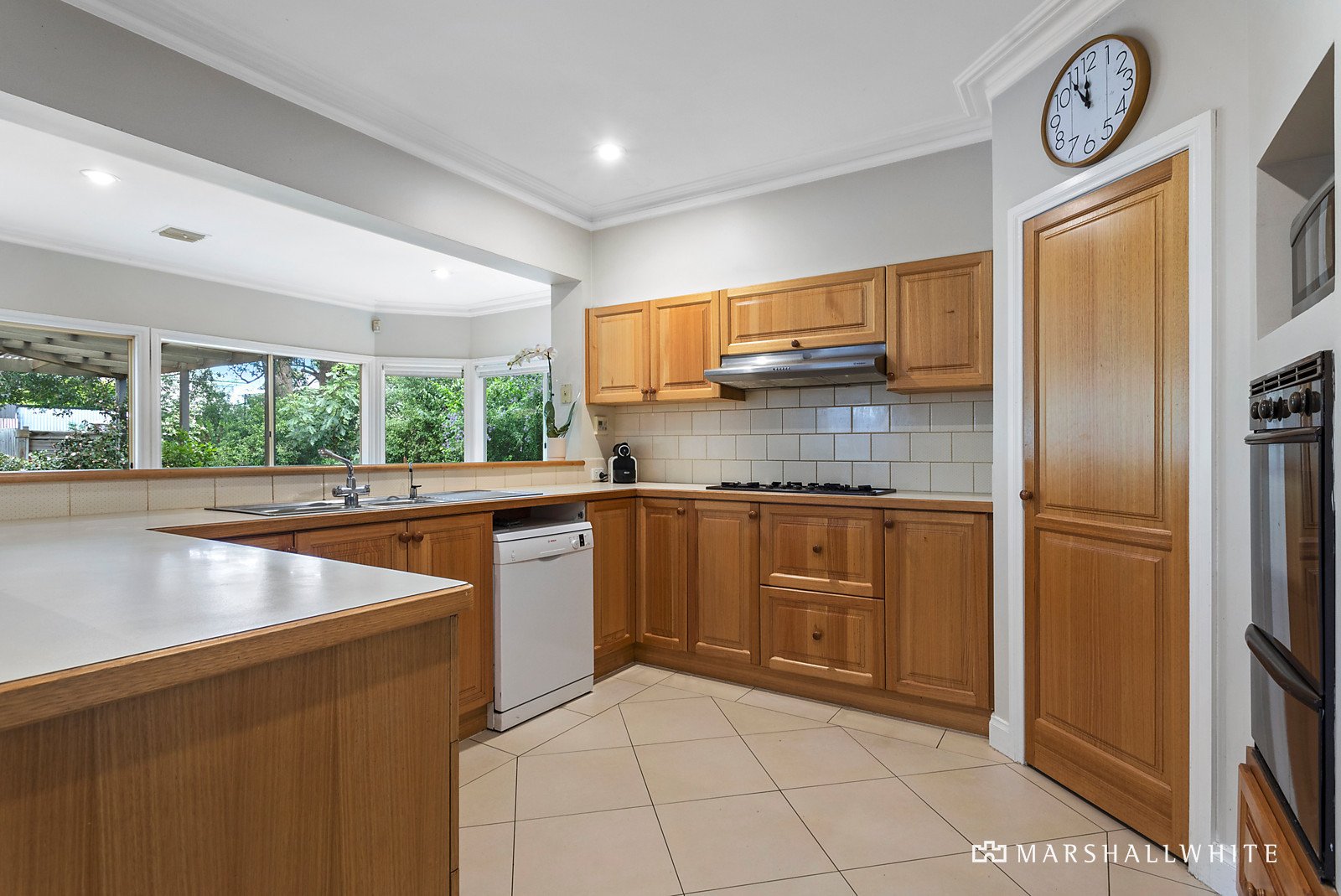 Beyond a sundrenched north-facing front garden, the accommodation delights with the choice of living areas on offer. From the formal lounge and dining zone to the relaxed family and meals area with an open fireplace, it then keeps on going to a light-filled rumpus room, meaning there is the perfect space for every occasion. Thanks to a multitude of windows, each one takes in outlooks of the expansive alfresco patio, captivating garden and sparkling pool, while ideally placed right at very heart of the floorplan making gathering with loved ones a breeze, the central timber kitchen provides ample space for preparation and storage.