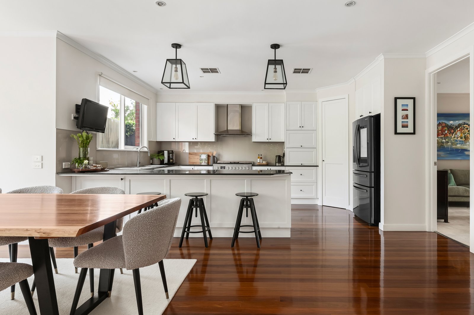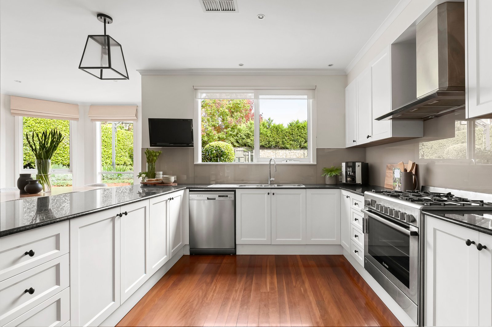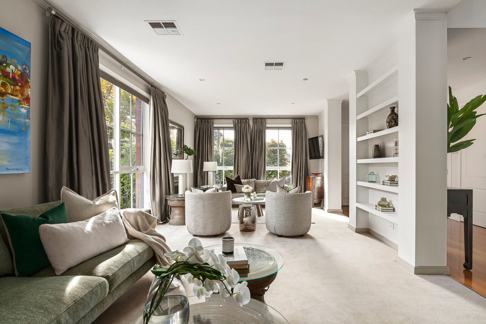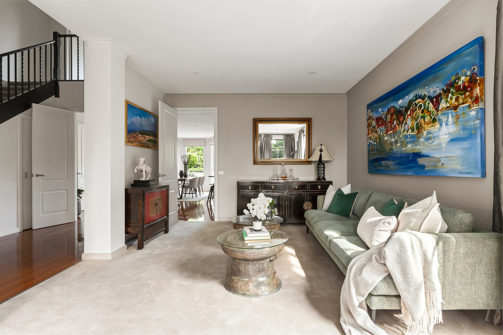 Enjoying a tranquil tree-lined setting close to Toorak Rd trams, Burwood station, Leo’s Supermarket, Ashburton Village, great schools, and Ferndale Park, it includes an alarm, zoned heating/cooling, powder-room, laundry, wine cupboard, irrigation, garden shed and internally accessed double garage.