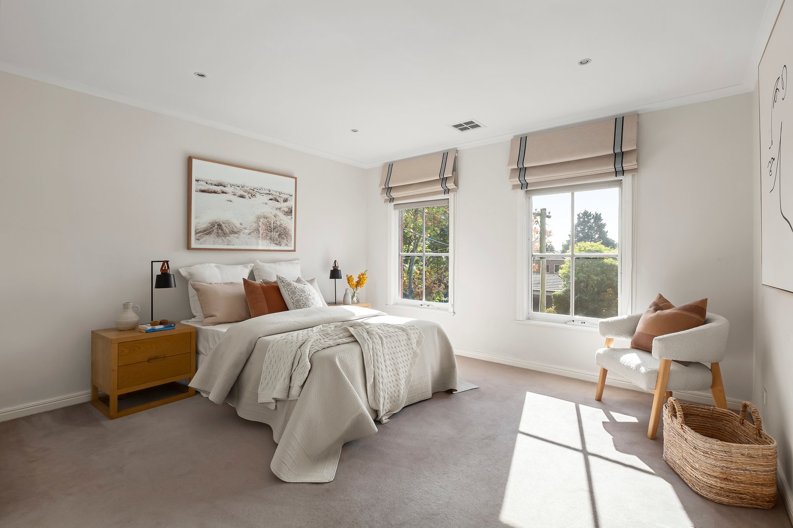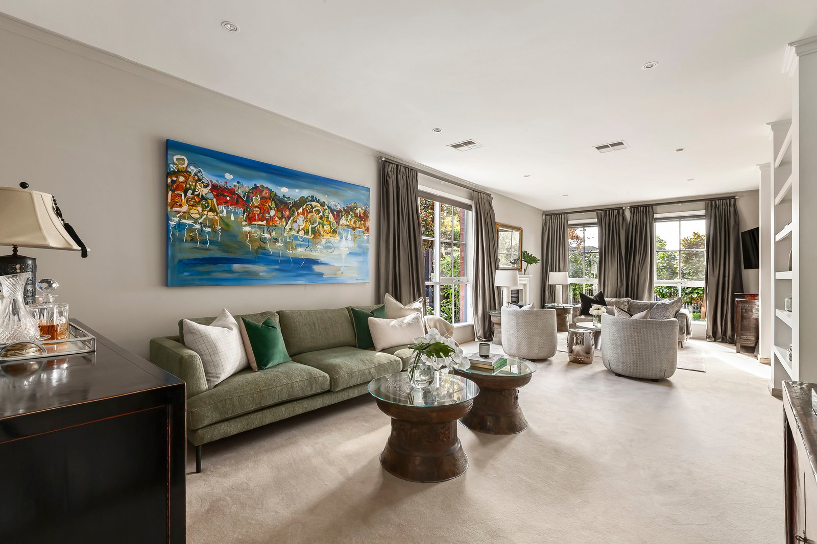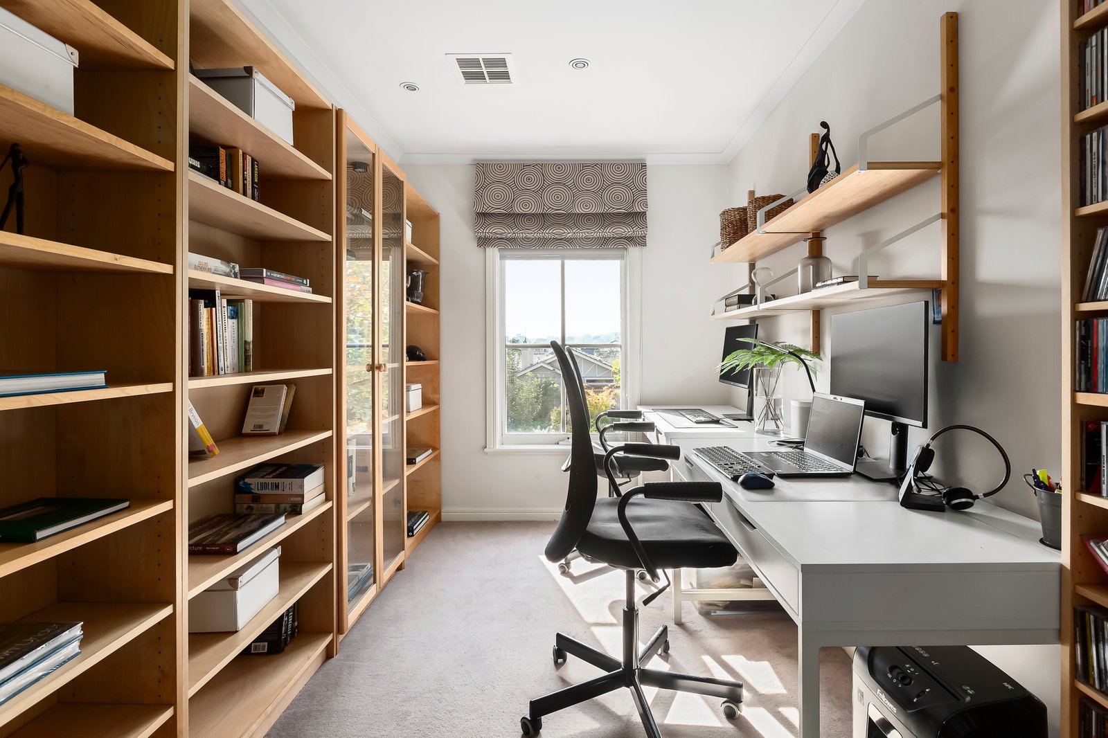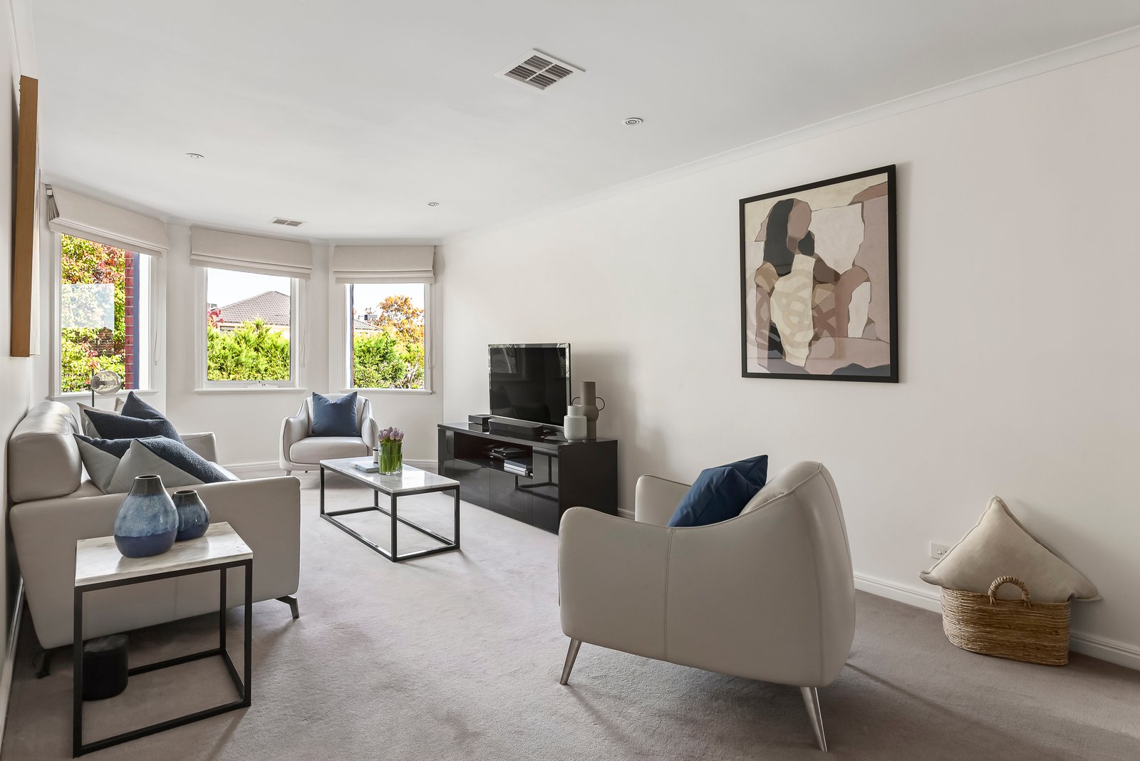 Enjoying a tranquil tree-lined setting close to Toorak Rd trams, Burwood station, Leo’s Supermarket, Ashburton Village, great schools, and Ferndale Park, it includes an alarm, zoned heating/cooling, powder-room, laundry, wine cupboard, irrigation, garden shed and internally accessed double garage.