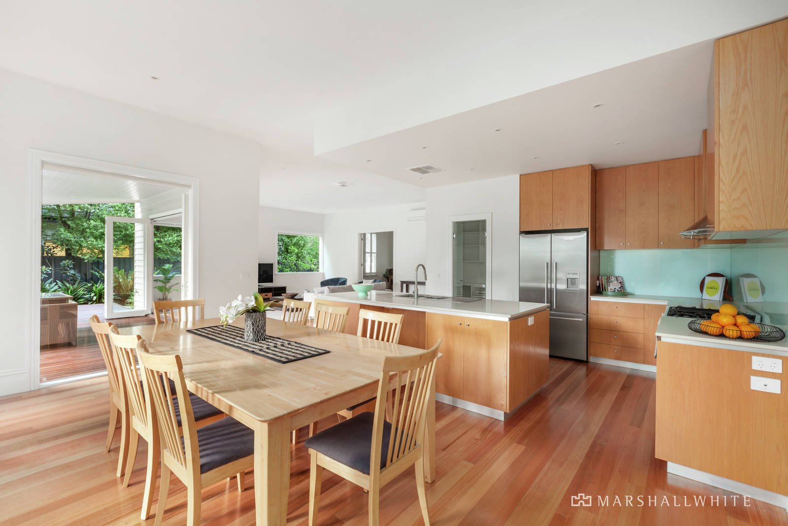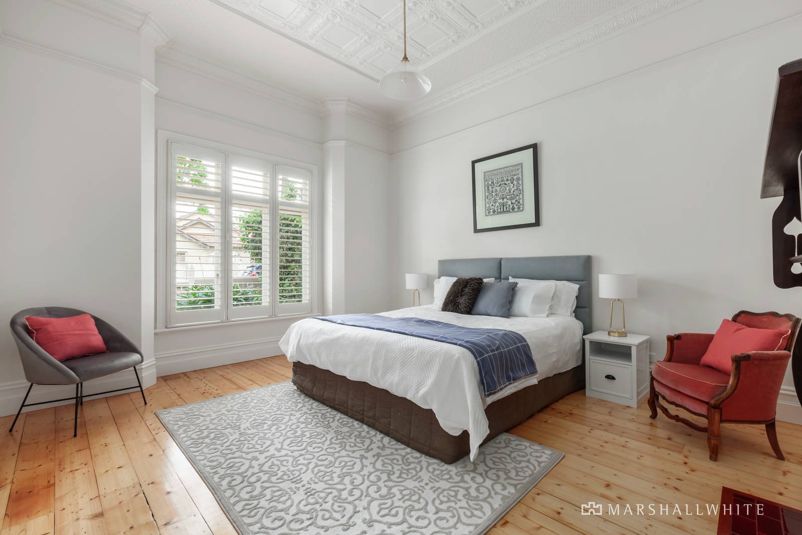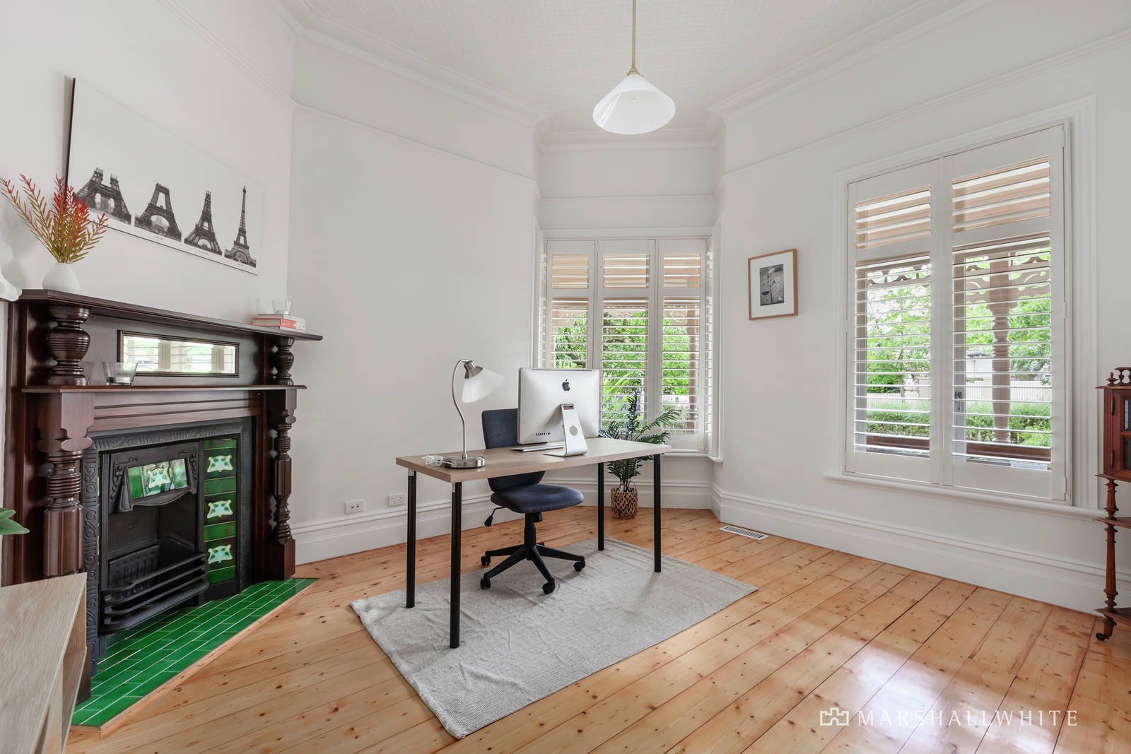 Evocative original pressed metal ceilings preside over the wide entrance hall, refined home office and elegant formal dining room both featuring fireplaces and timber floors. Generous family accommodation comprises on the ground level the gorgeous main bedroom with pressed metal ceiling, fireplace, walk in robe and chic en suite and a children's zone upstairs with three further bedrooms with robes, a stylish bathroom and spacious retreat. Spectacular in scale, the light-filled living and dining room with a superb gourmet kitchen appointed with stone benches and European appliances opens through bi-fold doors to a large covered al fresco deck and the deep private northwest garden with fish pond, BBQ deck and double garage accessed via Arlington Street. The pristine garage includes a toilet, sink, ample storage and upstairs, a versatile rumpus room/studio/gym or home office.