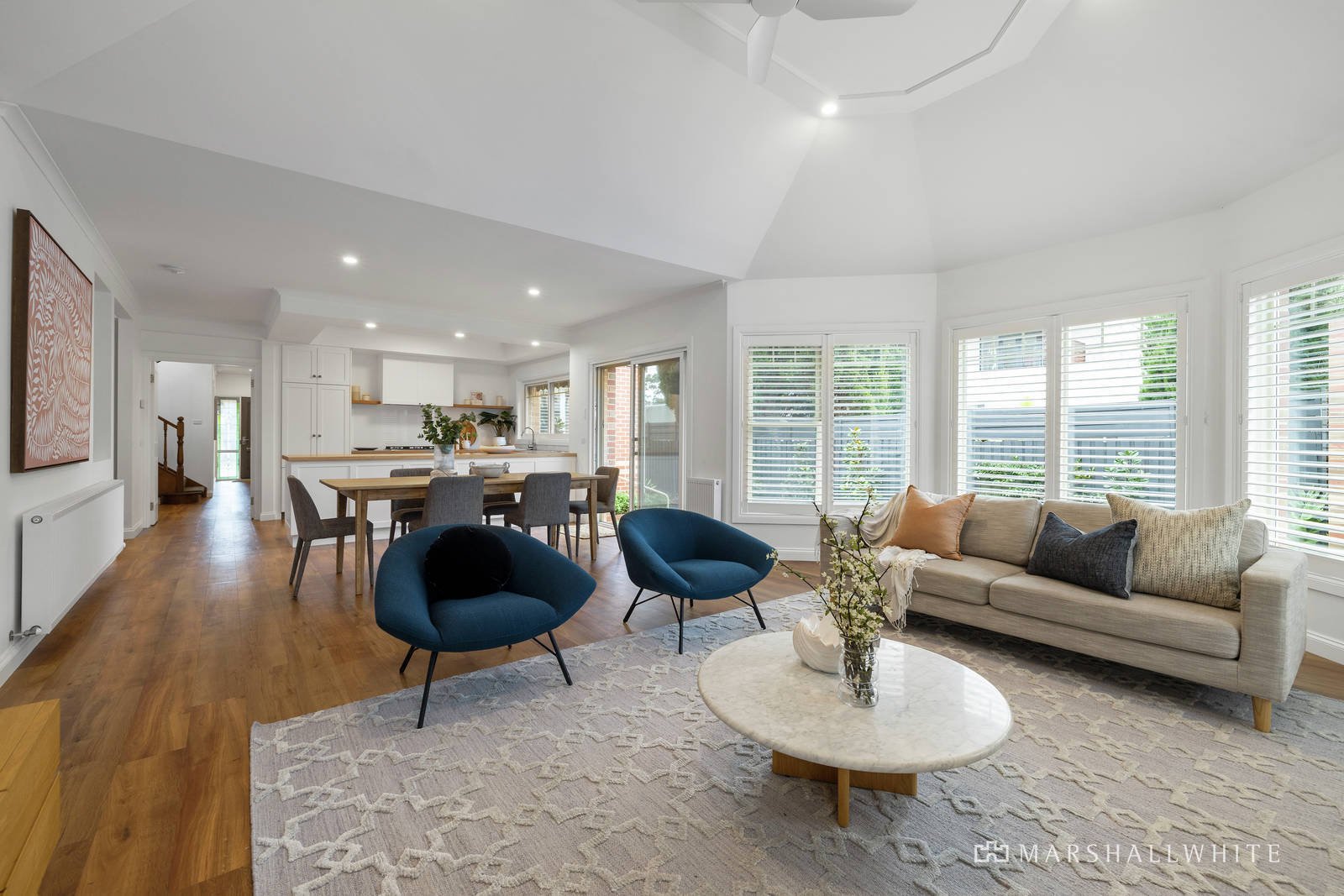 This spacious and refined forever home is further enhanced with ceiling fans throughout, built in robes in every bed-room, leadlight and double glazing, hydronic heating, integrated Miele appliances and Franke tapware in the kitchen and a low maintenance, fully irrigated garden.