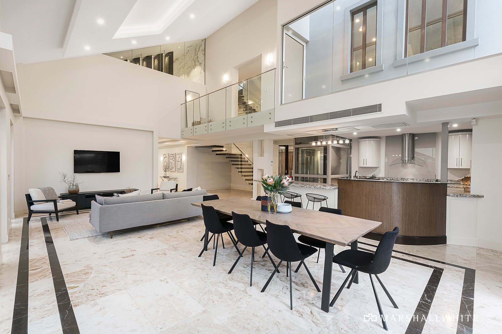 This architecturally designed home on 808sqm (approx.) includes an entrance hall, lift access across all levels, entertainer’s kitchen, plenty of storage space, full visibility of the indoor/outdoor entertaining areas, pool, oversized home cinema and a mezzanine level with a sauna, gym and bay views. The master bedroom suite has an expansive walk-in robe and large ensuite with bath whilst the remaining bedrooms have built-in robes and access to an ensuite or central bathroom, and the ground floor guest bedroom has its own private ensuite. There is a home office located near the front entrance whilst multiple living zones allow for formal and informal living, synthetic grassed area, undercover timber decking perfect for family get-togethers, basement garage for six vehicles and zoned heating and cooling throughout.