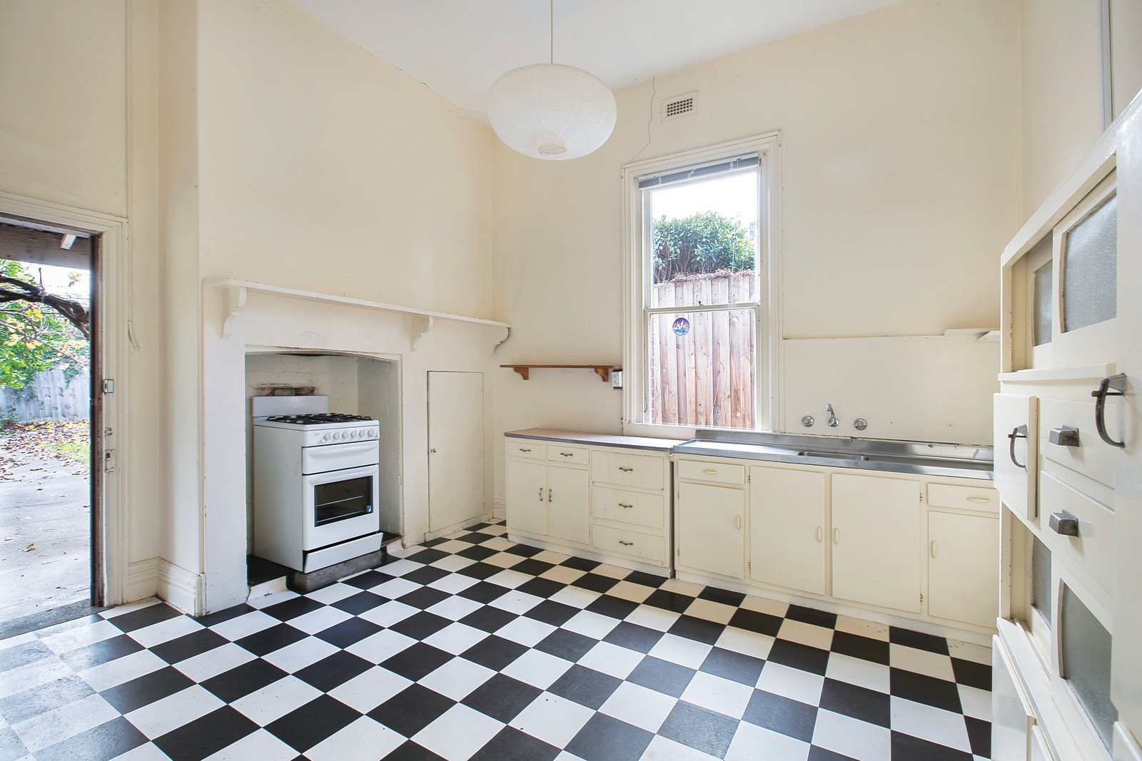 Behind a tessellated return verandah, the wide reception hall featuring high ceilings, leadlight windows and timber detailing introduces a glorious sitting room with bay window and grand formal dining room with a timber mantelpiece. An exceptionally spacious main bedroom with timber mantelpiece is complemented by three additional double bedrooms (2 with open fireplaces), two bathrooms and a kitchenette. The large pristine kitchen leads out to the private northwest facing garden with garage accessed from rear laneway.