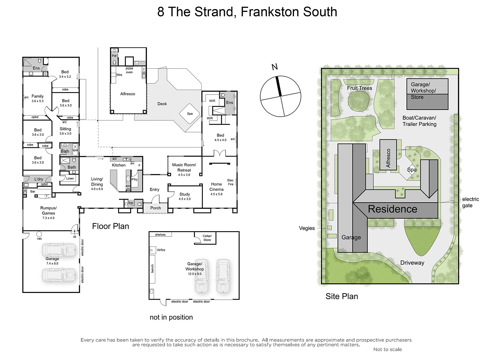 Other features of this impressive family residence include high quality fixtures, fittings and carpets, ducted heating, R/C air conditioners (4), ducted vacuum, electric stone FP (Theatre Rm), Linen/Store room and a front remote double garage, plus a remote gate to a 3-car garage, boat or caravan storage with workshop, cool room/cellar, external WC and off-street parking including a trailer bay.