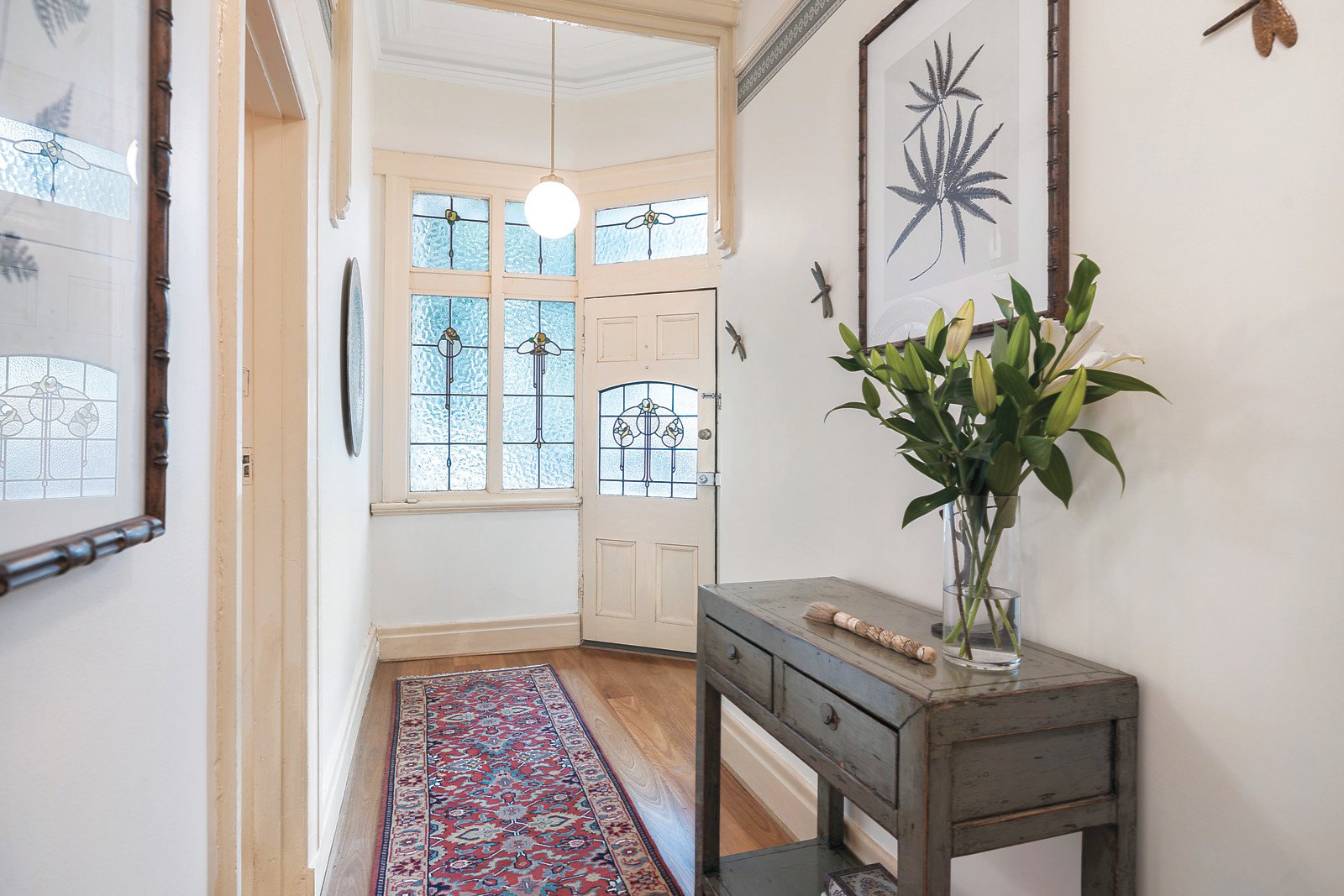 High ceilings, leadlight windows and timber floors define the wide entrance hall which leads through to a generous living room with Arts and Crafts fireplace, light-filled dining area and a well-appointed kitchen opening to a private leafy north-facing courtyard garden. Two beautiful double bedrooms, one with an open fireplace and access to a second courtyard area, are accompanied by a third gorgeous bedroom adjacent to the central bathroom.