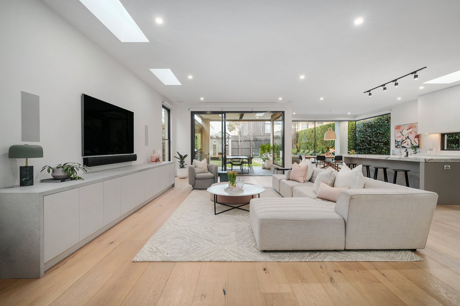 Enjoying a coveted location close to Central Park, Waverley Rd shops and cafes, trams, Caulfield station and excellent schools, it includes keypad entry, back to base alarm, CCTV, video intercom, 7.1 surround sound, outdoor Sonos sound system, underfloor hydronic heating, zoned RC/air-conditioning, remote blinds, powder-room, laundry with drying cupboard, solar assist instantaneous gas hot water, irrigation, garden lighting and internally accessed double garage.