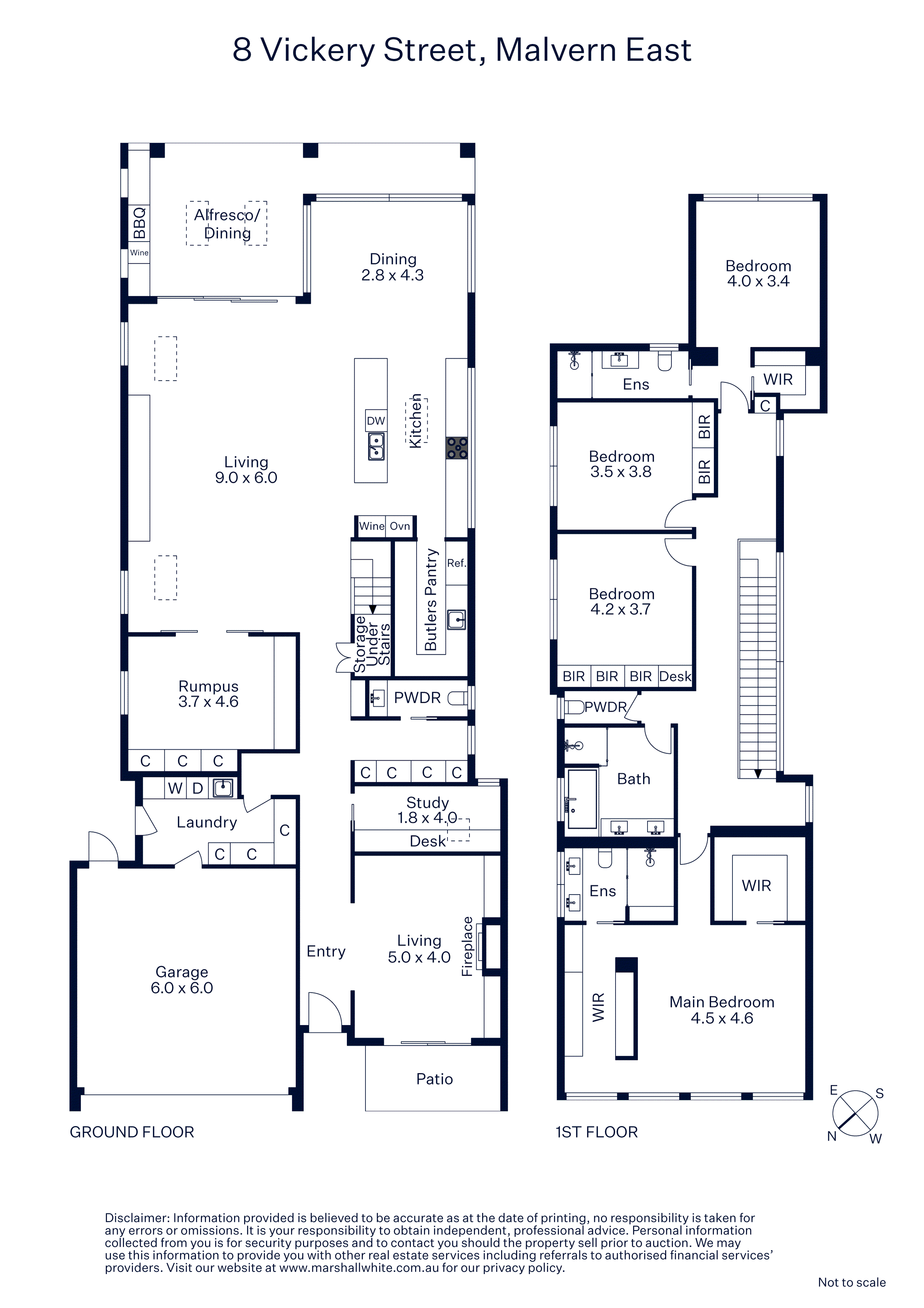 The welcoming entrance hall featuring 3m ceilings and wide oak floors flows through to generous sitting room with gas fire and access to a gorgeous north-facing walled forecourt with tranquil water feature. Perfect for working at home, the home office is fitted with two workstations while a media room or retreat is a wonderful venue for home movie nights. Filled with natural light, the expansive open plan living and dining areas surround a sleek gourmet kitchen appointed with premium Gaggenau appliances, marble and stone benches, integrated Liebherr fridge/freezer, wine fridge, Billi tap and butler’s pantry. Stacking glass sliders extend the living and entertaining options out to a large undercover bluestone terrace with heater and BBQ kitchen and the deep private landscaped garden with gas heated pool and an atmospheric outdoor fire zone with built in seating. Impressive family accommodation upstairs comprises the beautiful main bedroom with dual walk in robes and designer en suite, a second bedroom with chic en suite and walk in robe, two additional robed bedrooms and a stylish bathroom.