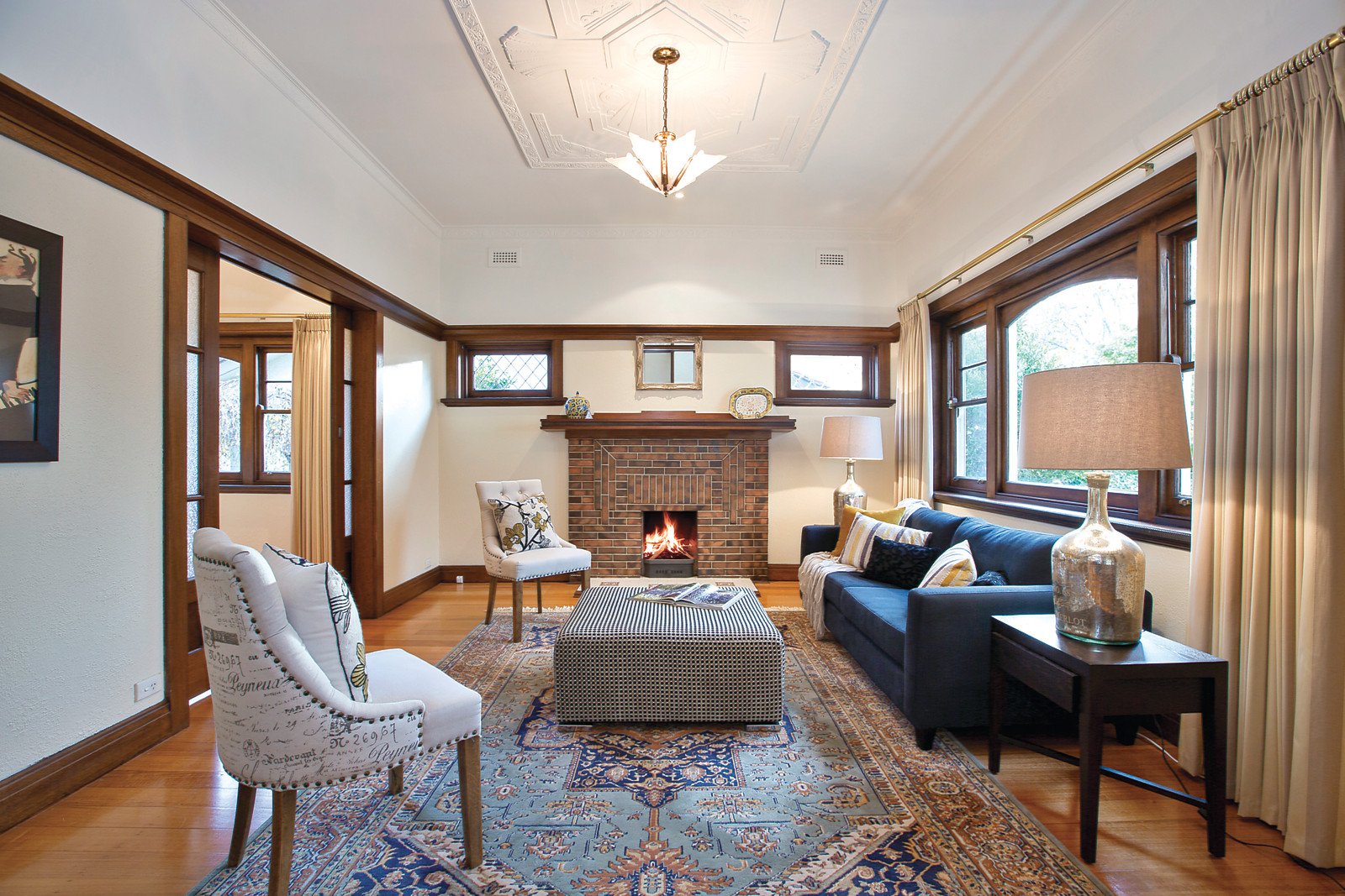 Deco ceilings and timber floors exude wonderful original charm through the wide central hall and the beautiful formal sitting and dining rooms each featuring decorative open fireplaces. A soaring ceiling with clerestory windows accentuates the scale and sense of light in the expansive family living and dining room with a sensational gourmet European kitchen boasting stone benches. Bi-fold doors reveal a deep private garden with spa, entertaining terrace and pedestrian ROW. A gorgeous main bedroom is complete with a stylish en-suite and built in robe, while two additional fitted bedrooms share a chic bathroom.