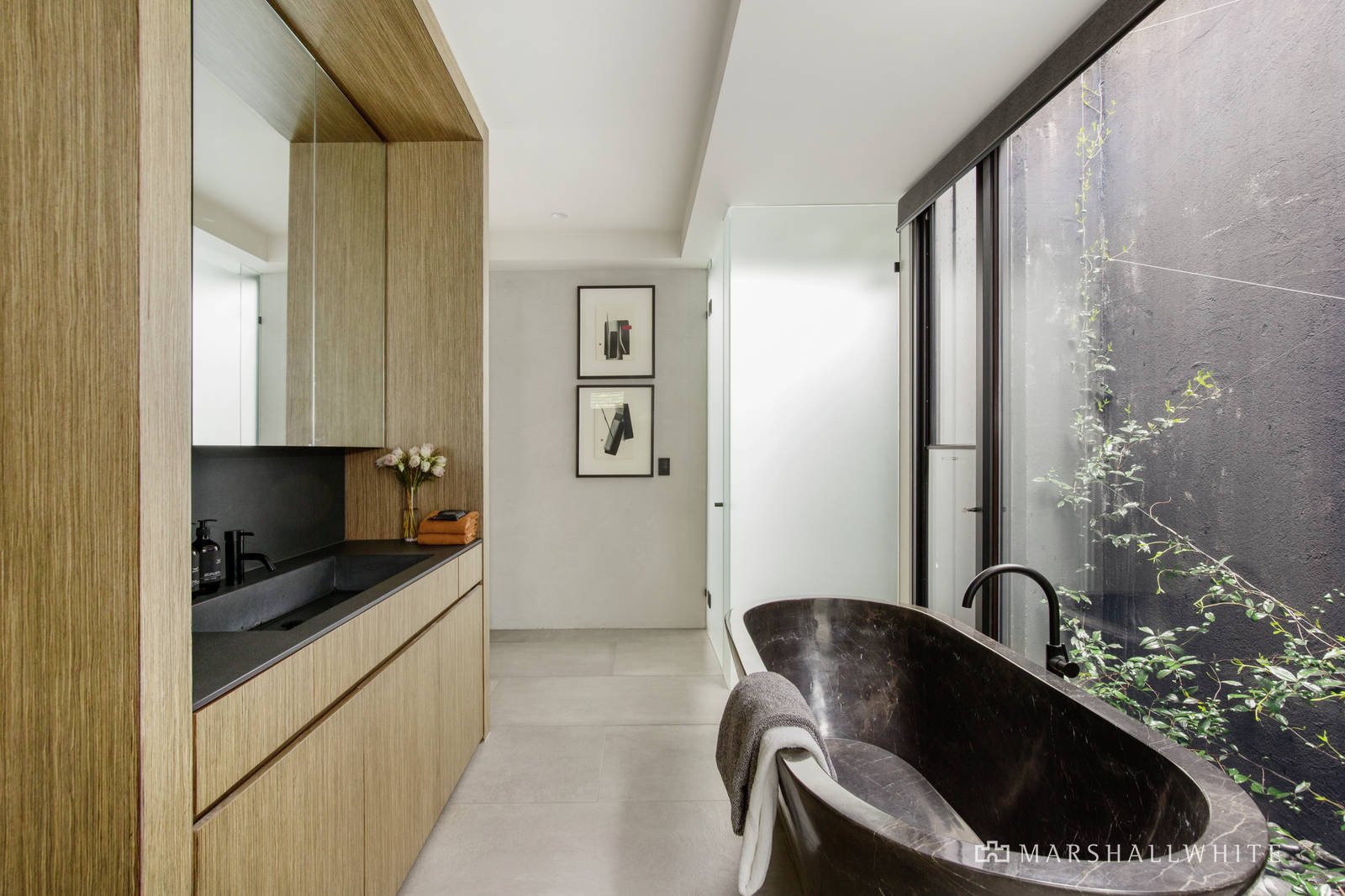 The zoned interior features Italian porcelain tile flooring flowing to a downstairs main bedroom with sky lit WIR and ensuite fitted with a hand crafted Italian marble bath; laundry plus two further family bedrooms, retreat and bathroom. Level two has a study (potential home cinema) fourth bedroom and bathroom. Plus an expansive family domain incorporating a state-of-the-art kitchen equipped with Laminan porcelain benchtops, a full suite of prestige VZUG appliances, Liebherr fridge/freezer, Billi integrated filter tap and custom fitted cabinet fittings. All flowing to the stunning indoor/outdoor entertaining area, including a barbeque kitchen overlooking the rear ornamental tree-lined garden featuring a garden sculpture by Japanese artist Chen. Plus a roof top terrace accessed through a Gorter hatch revealing 360deg panoramic views across the surrounding suburbs to the spectacular City skyline.