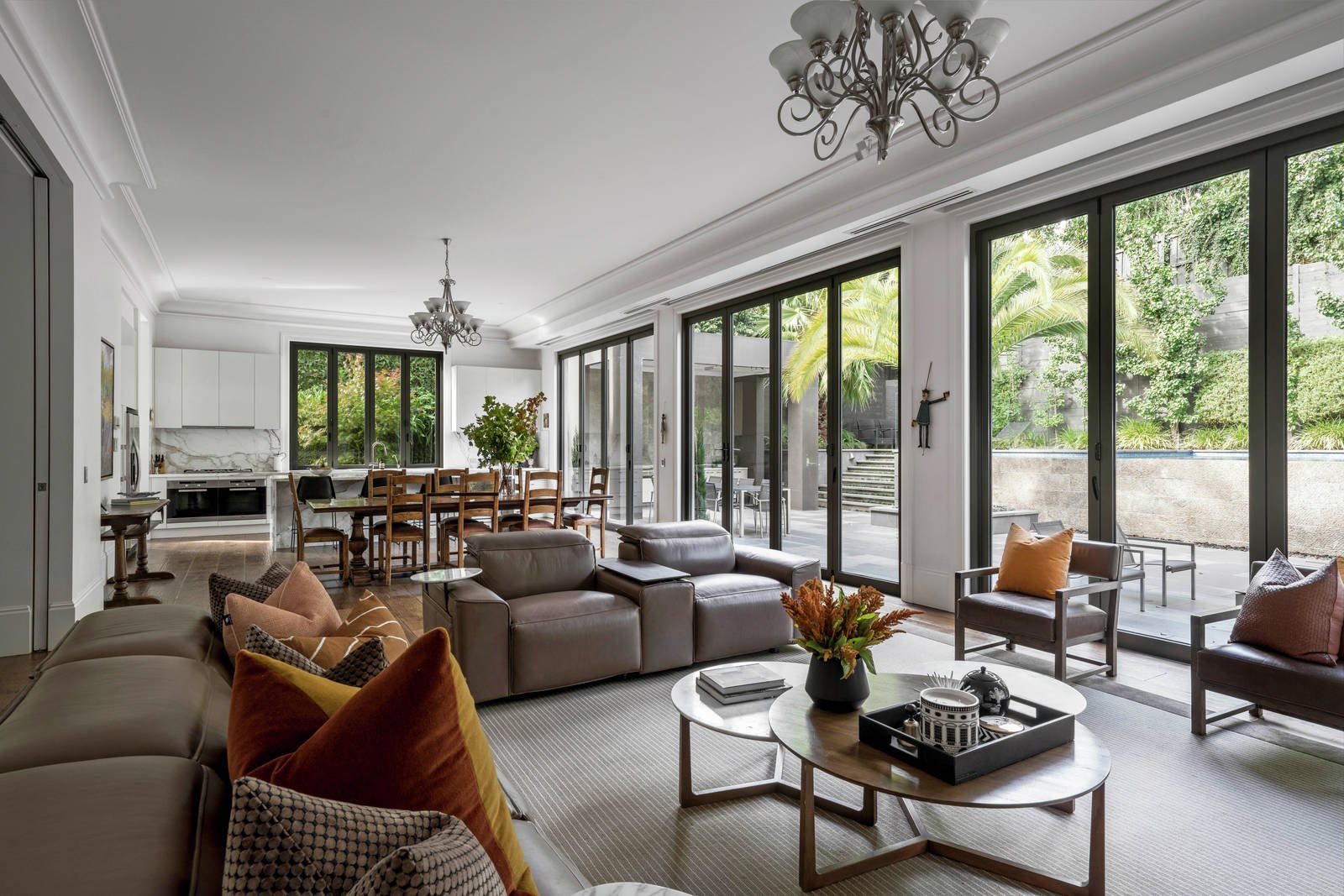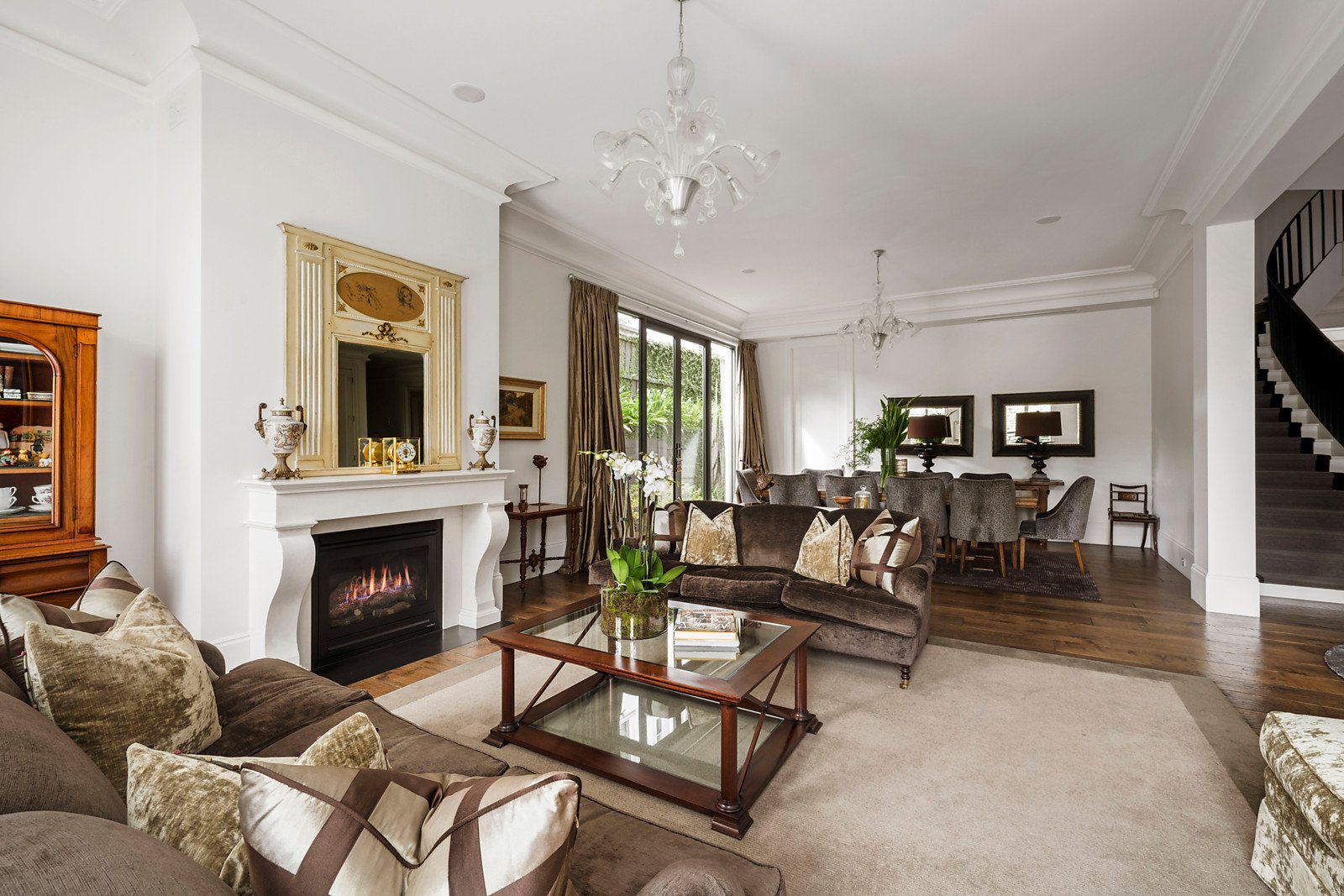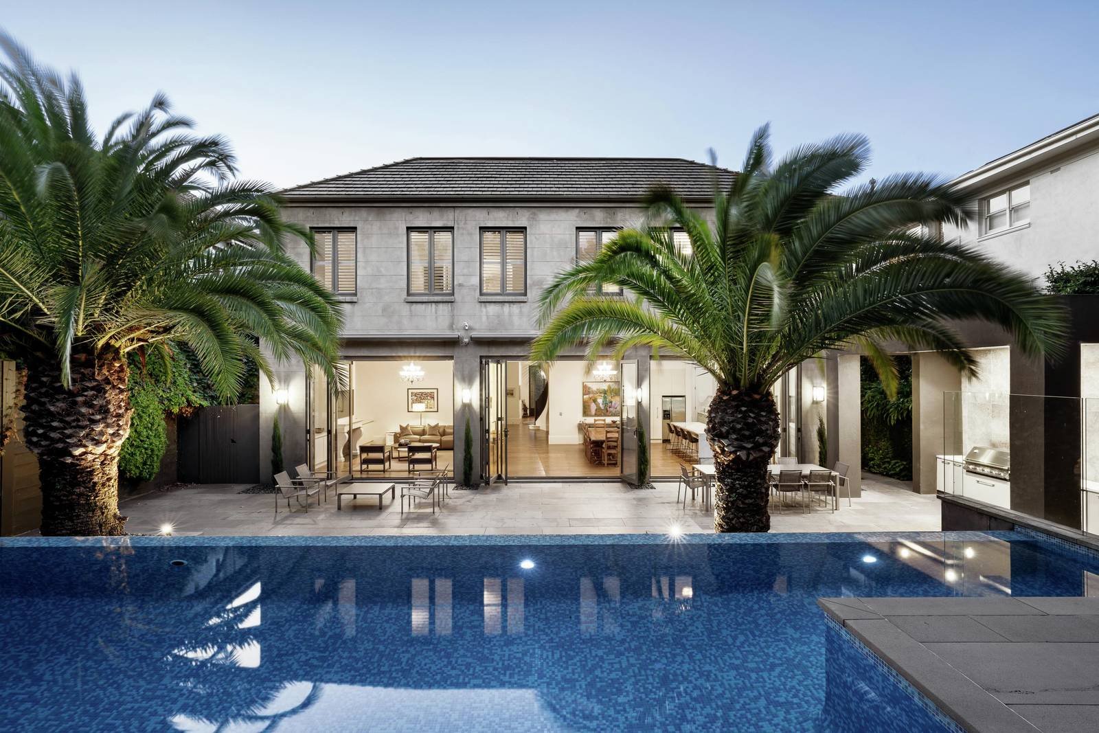 Defined by classic European elegance and set within spectacular landscaped garden and pool surrounds, this unforgettably beautiful residence designed by esteemed architect Nicholas Day impressively showcases lavish proportions, opulent finishes and the latest in sophisticated home technology. Commanding an imposing elevated position behind breathtaking gardens, the expansive reception hall featuring dark oak floors, soaring ceilings and a sweeping staircase introduces a refined home office and gracious formal sitting and dining room with a gas fire. The palatial open plan living and dining room with a gas fire and premium kitchen boasting marble benches, Miele appliances and a butler's pantry with bar fridge opens seamlessly through 3 sets of bi-fold doors to the picturesque private garden with stunning wet edge heated pool, covered BBQ terrace and extensive bluestone paving. Accessed by lift and stairs, the generous family accommodation zone comprises a sumptuous main bedroom with retreat, deluxe walk in robe and designer en suite, a second bedroom with en suite and walk in robe, two additional bedrooms with robes, a stylish bathroom and retreat. A sensational fitted home theatre with wet bar, spacious gym/rumpus room and 5+ car garage are all on the basement level.