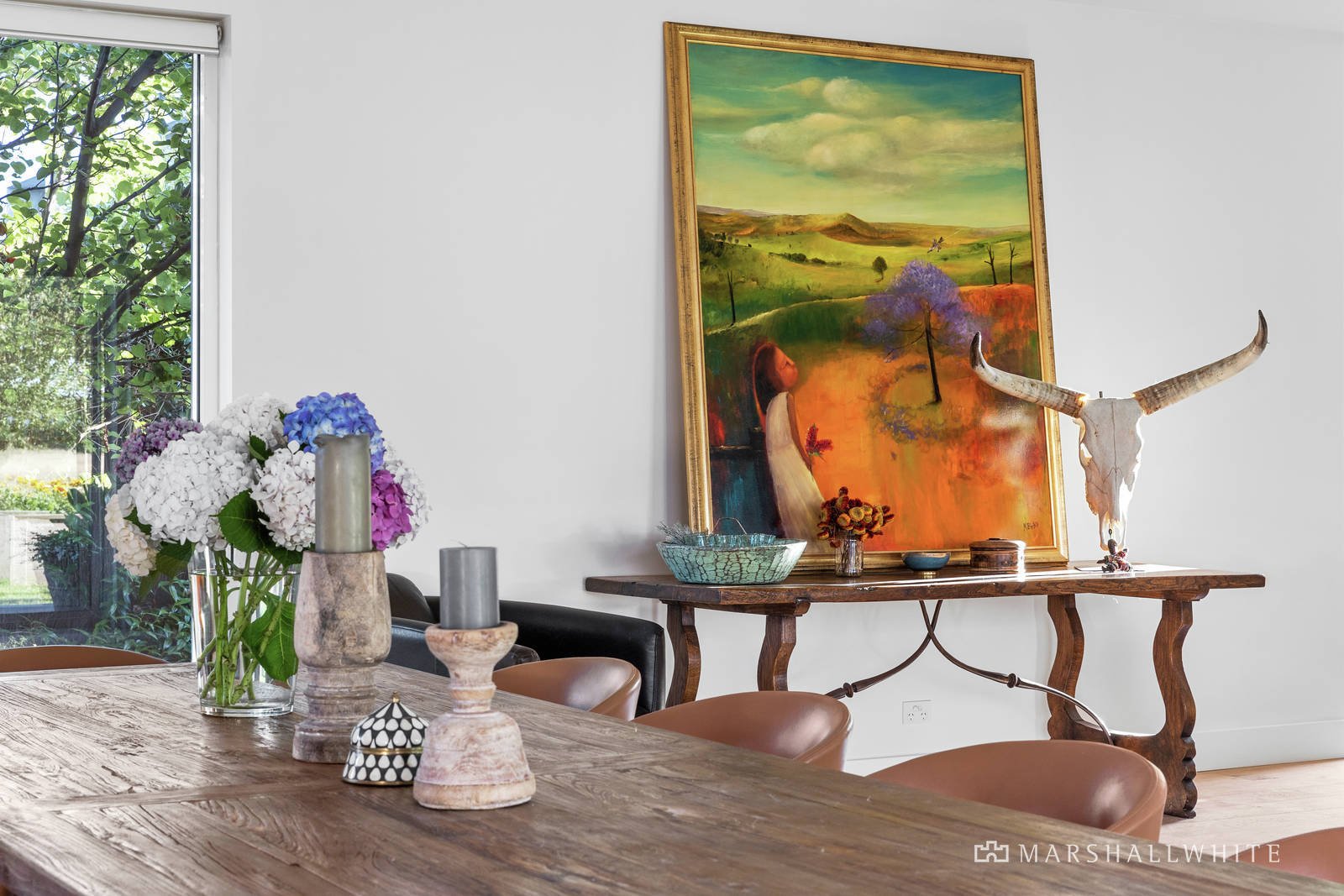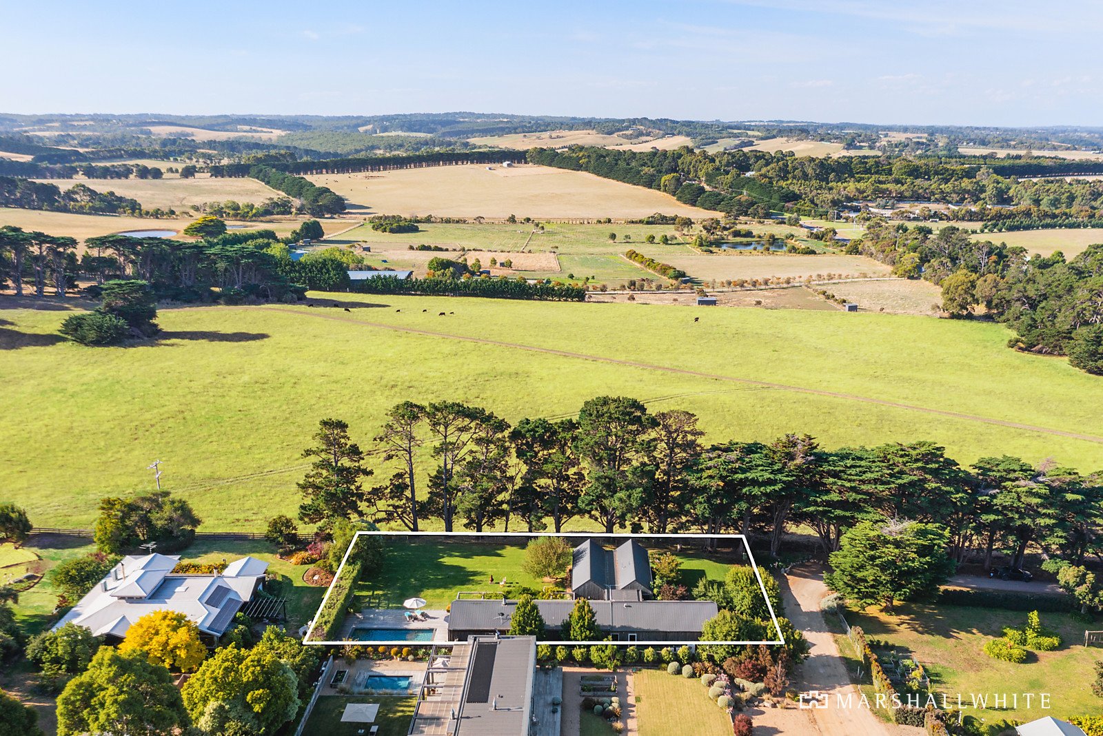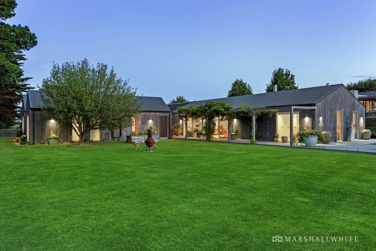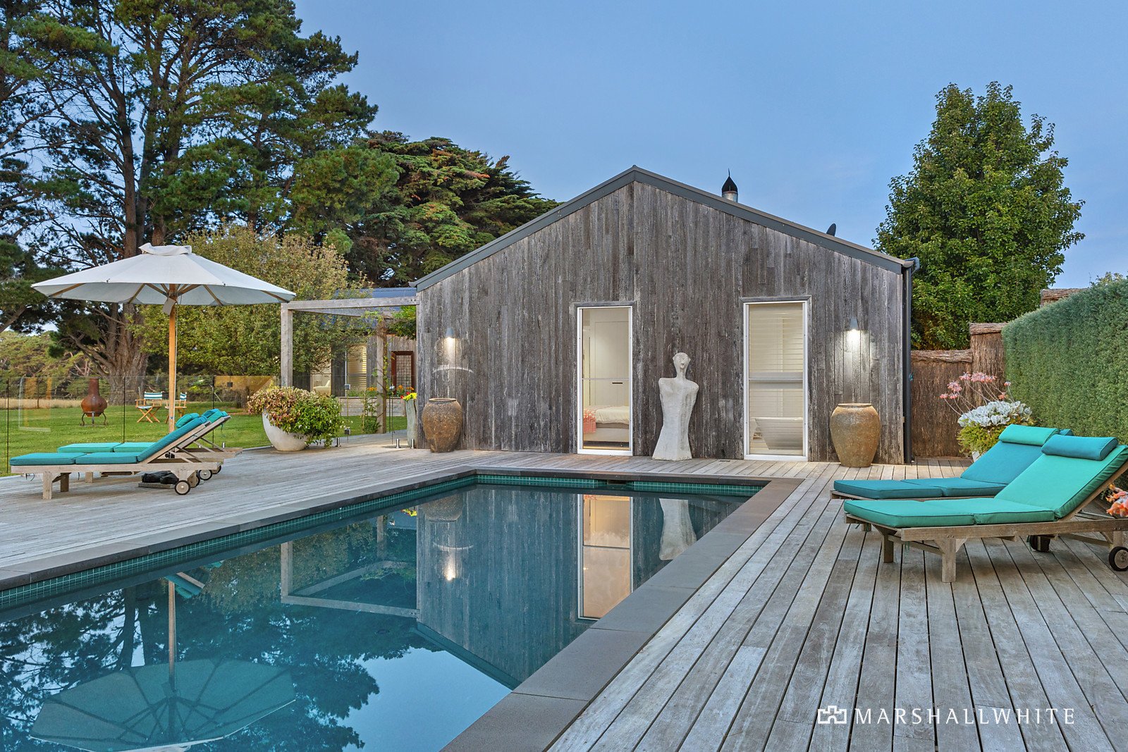 A thoughtfully curated palette of durable and natural materials unite within the home's individually styled design, distinctive within its spotted gum exterior, twin-wing layout and poolside alfresco setting, designed to encompass the borrowed rural outlooks at every turn. Introduced by a uniquely reclaimed metal front door, the home's endearing warmth continues throughout the beautifully zoned interior, where a restful accommodation wing meets lavish, large-scale entertaining via a light-filled entrance hall.