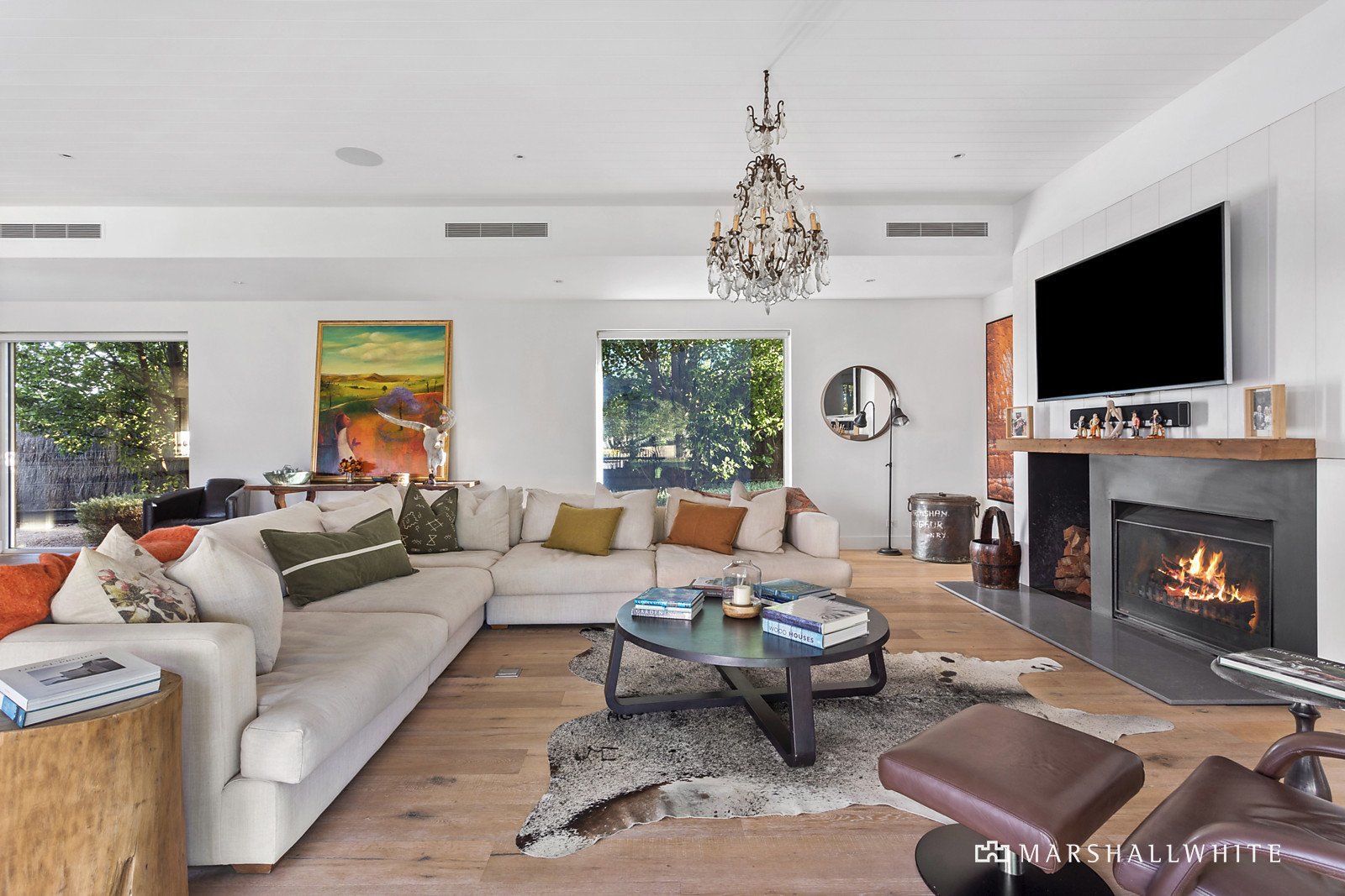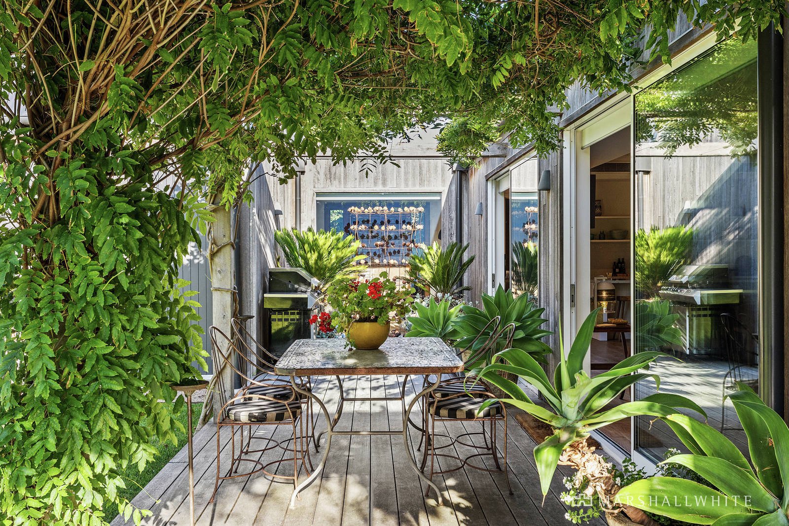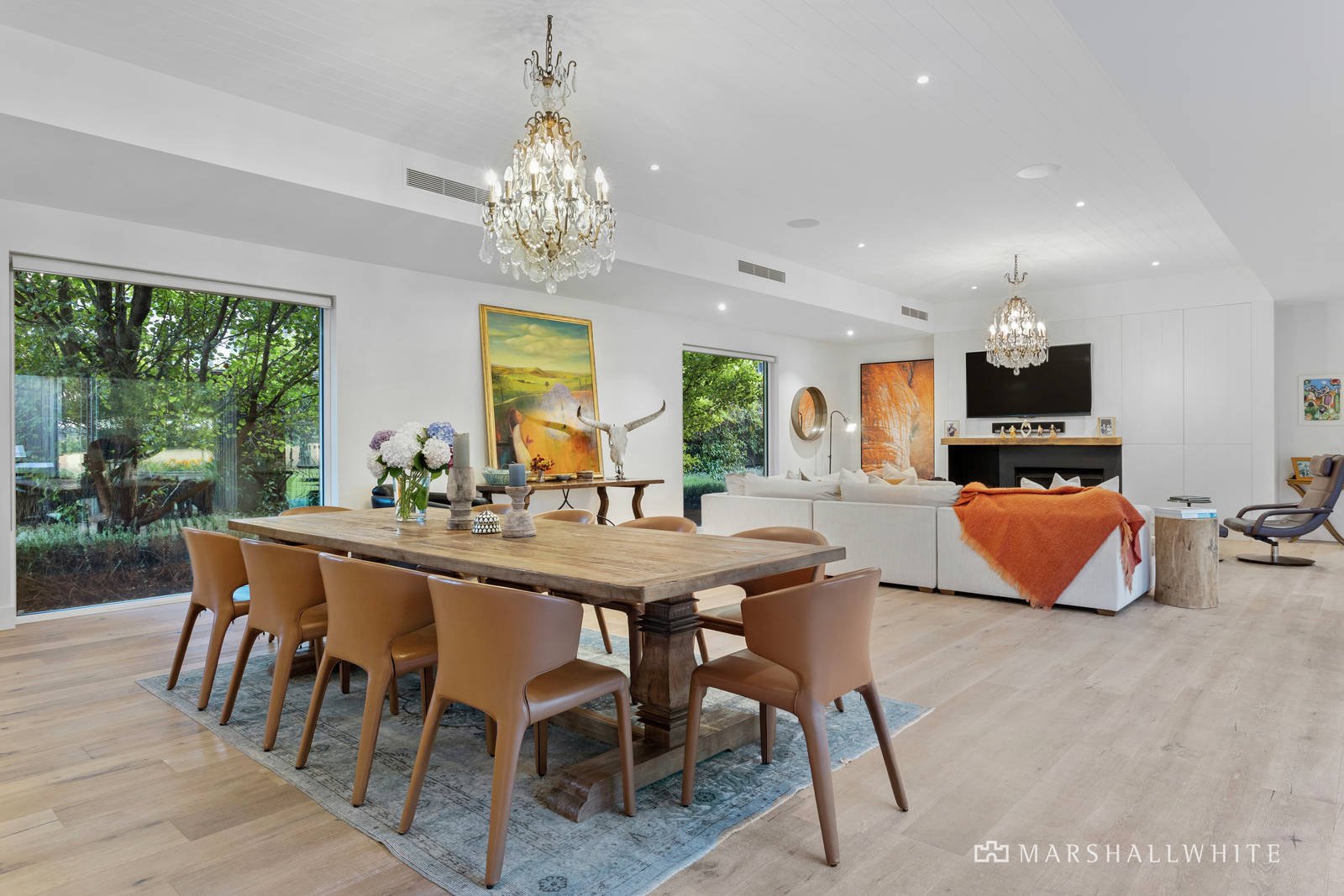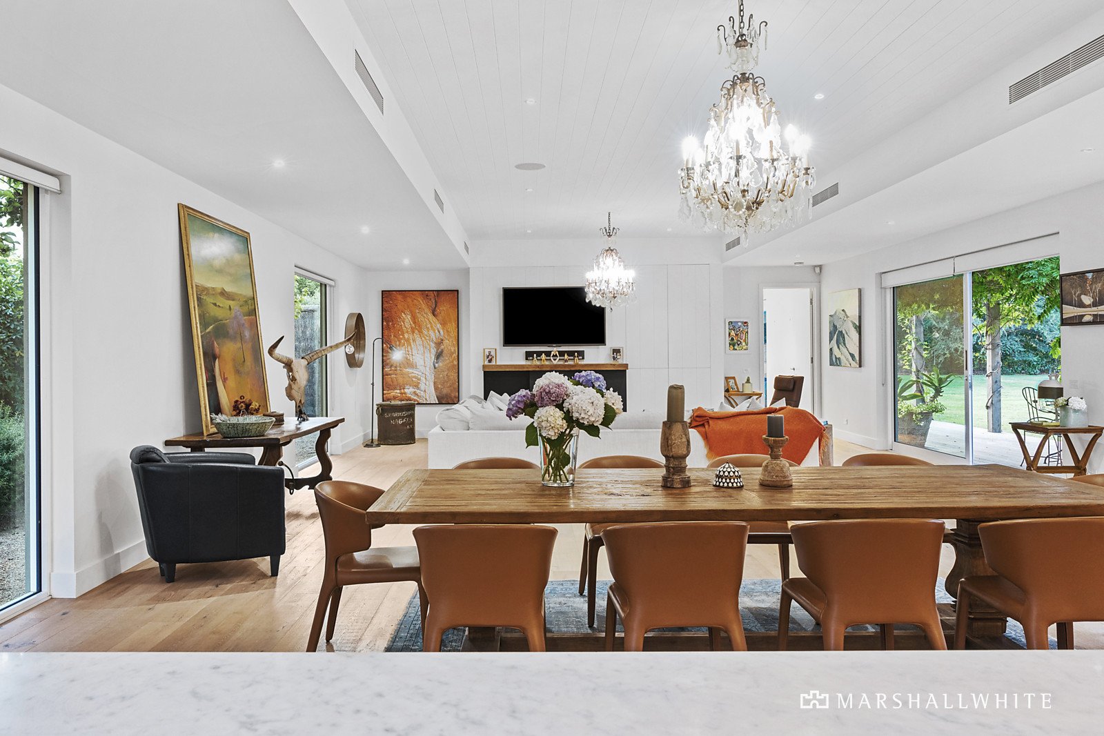 A thoughtfully curated palette of durable and natural materials unite within the home's individually styled design, distinctive within its spotted gum exterior, twin-wing layout and poolside alfresco setting, designed to encompass the borrowed rural outlooks at every turn. Introduced by a uniquely reclaimed metal front door, the home's endearing warmth continues throughout the beautifully zoned interior, where a restful accommodation wing meets lavish, large-scale entertaining via a light-filled entrance hall.