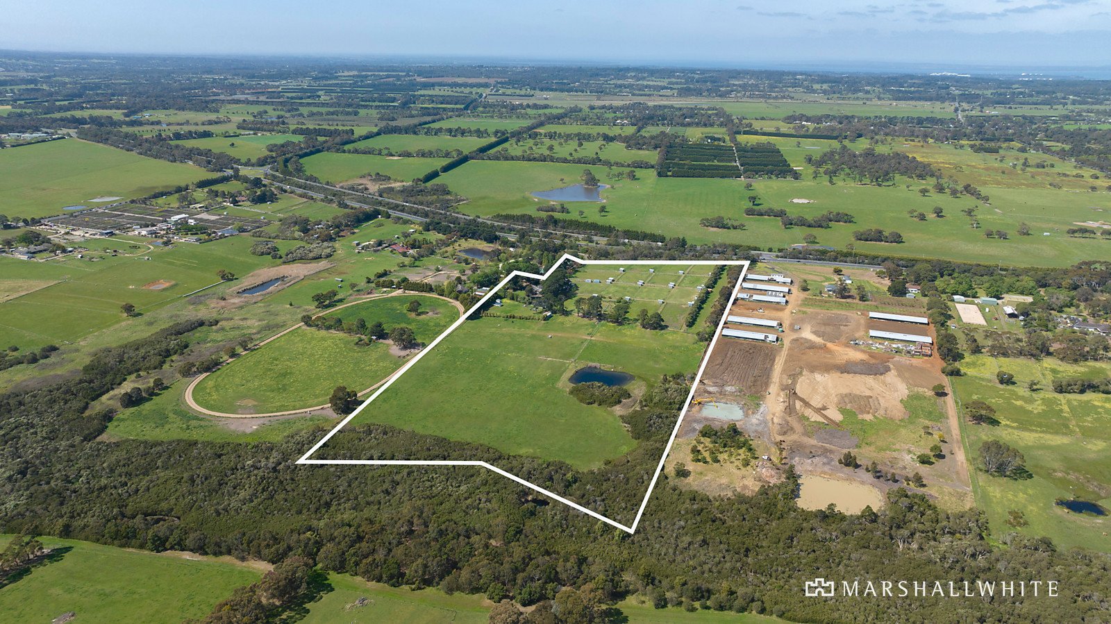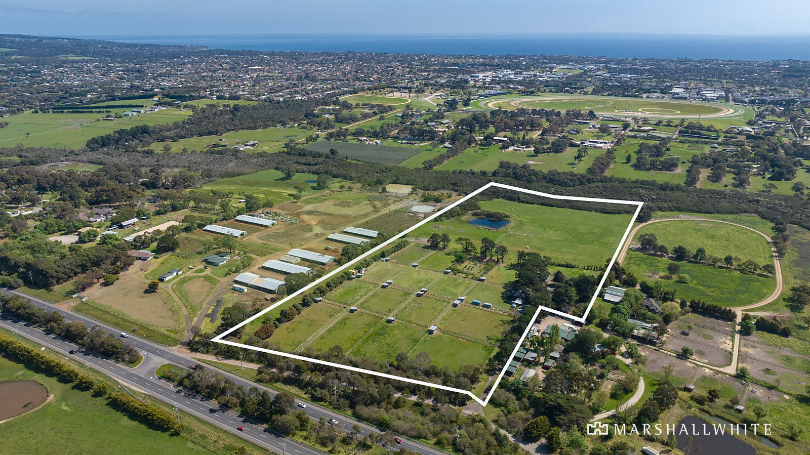 Located in the prized Mornington racecourse precinct, and stretching to Balcombe Creek, the ‘green wedge’ zoned property, comprising 16 fenced paddocks with water troughs and sheds is perfect for equestrian or horticultural use. A spring-fed dam provides ample water for the farm and residences, while an impressive, newly constructed barn has triple remote roller doors, one extra high for boat or truck storage, a remote rear access roller door, and a mezzanine level.