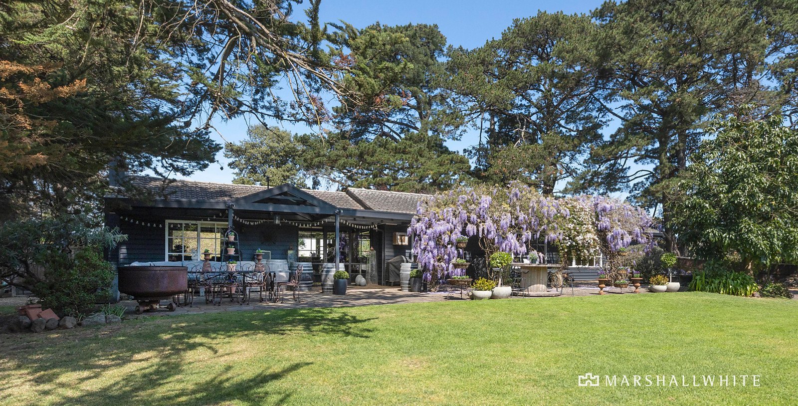 Create your own version of the ‘good life’ on this idyllic 21 acre (approx.) Mornington property, comprising lush farmland with fenced paddocks, a spring-fed dam, a new barn, a renovated four-bedroom farmhouse surrounded by established gardens, plus a unique self-contained residence converted from a ‘red rattler’ train.