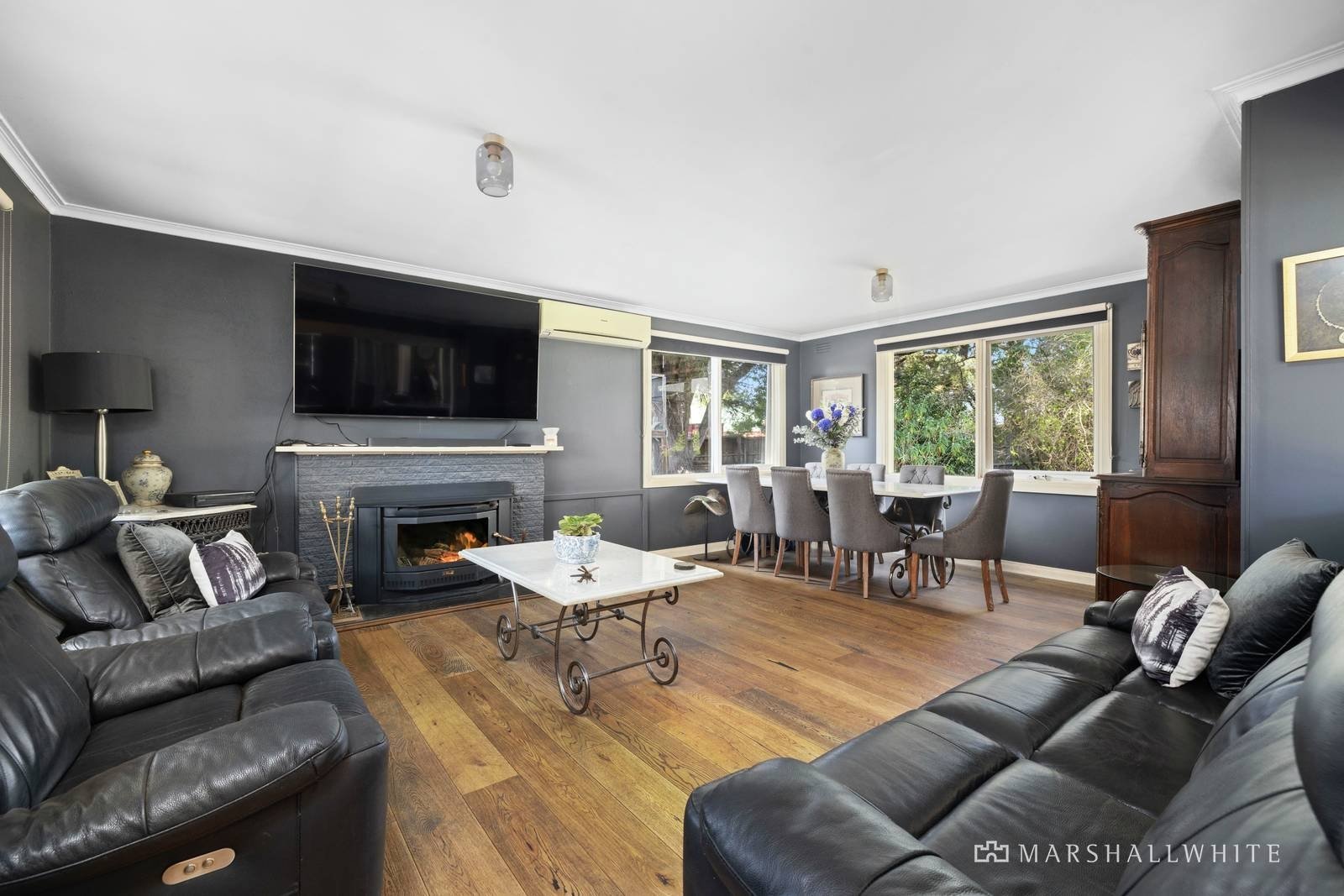 Accessed from the Moorooduc Highway service road a long driveway leads to a turning circle beside the charming homestead-style single-level 4-bedroom timber home, which is surrounded by a lovely garden setting, including a superb wisteria-draped pergola above the rear undercover alfresco zone. A lush lawn with a miniature horse stable (or cubby/shed), and the ‘Taj Mahal’ of chicken coops complete the picture. Recently renovated, the classic 1960s-built farmhouse features engineered oak flooring, an open plan living/family room with a wood fireplace, and the central kitchen has a marble-topped island bench/breakfast bar, a pressed metal splashback, and is fitted with quality appliances including an electric free-standing stove. The main bedroom has lovely garden outlooks through a multi-paned window, a walk-in robe and ensuite, and there is a gleaming newly renovated main bathroom. Newly carpeted, two of the additional good-sized bedrooms have built-in robes, while the third (or home office/study) has its own entrance door.
