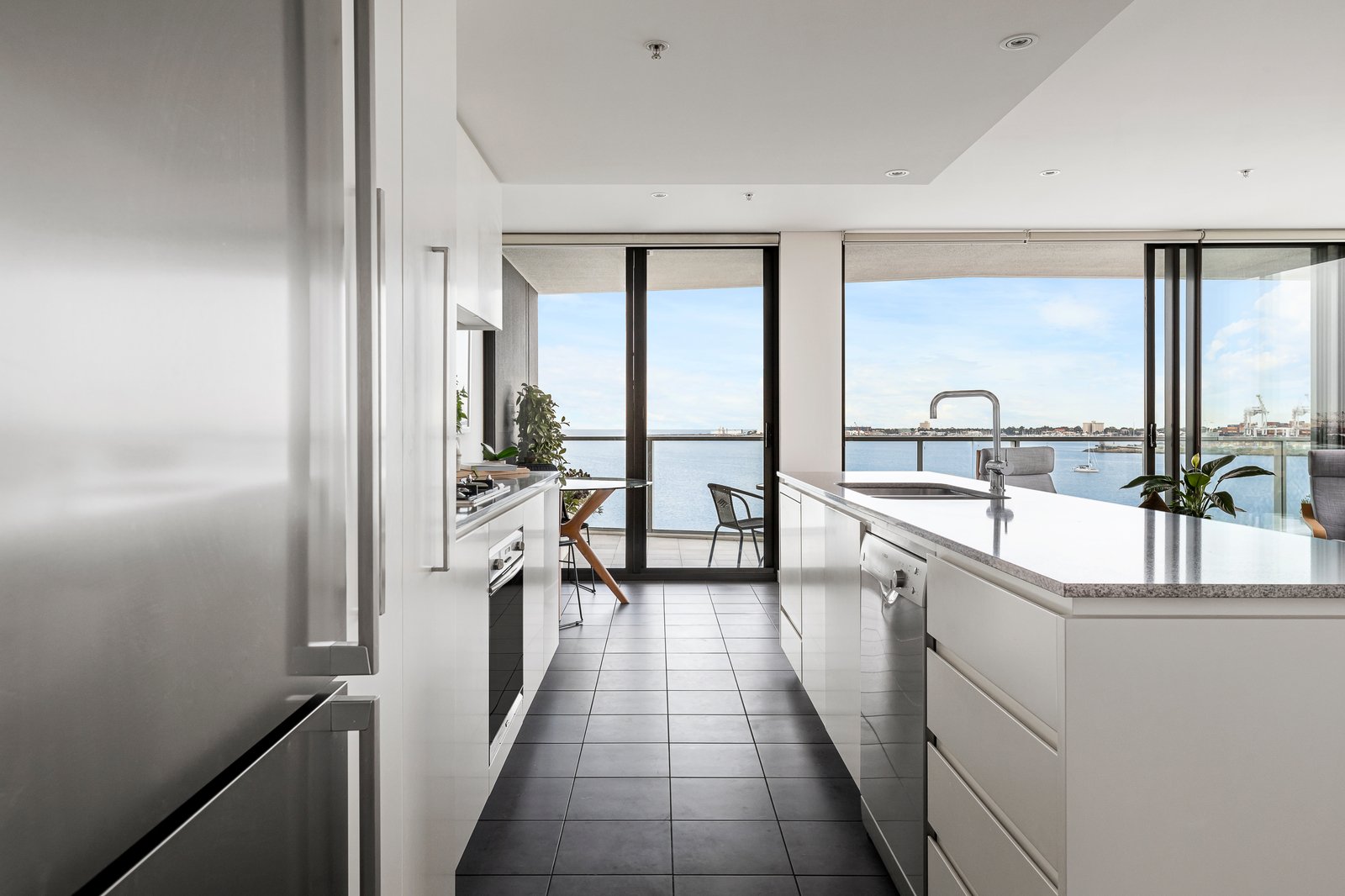 Discover a life of ease, style and prestige, and savour the exclusivity of owning Melbourne’s most captivating panoramic outlook from this exceptional, waterfront three-bedroom residence. Secure video entry and direct lift access inspire a premier lock-and-leave lifestyle, with superbly bright interiors spanning two living areas and a substantial granite-bench kitchen with a suite of Smeg and Bosch appliances, perfect for relaxed enjoyment or lavish entertaining. Slide back the floor-to-ceiling glass doors to the crystalline waters of Port Phillip Bay from a deep balcony terrace, where you enjoy uninterrupted painted sunsets over the horizon.