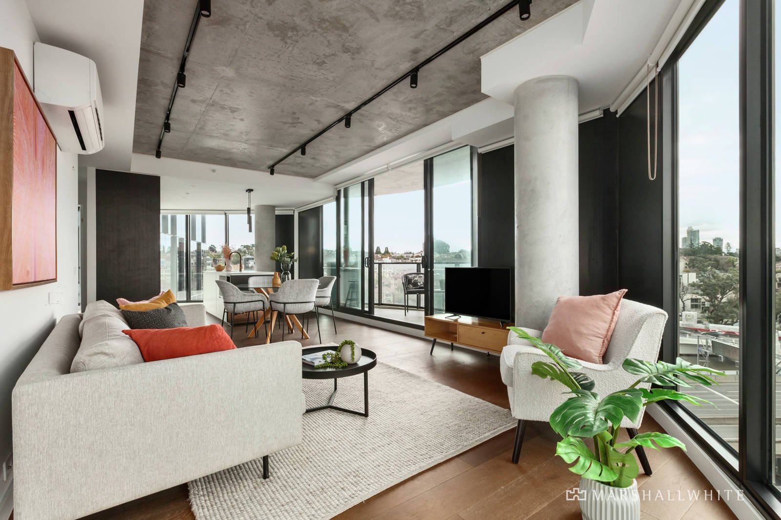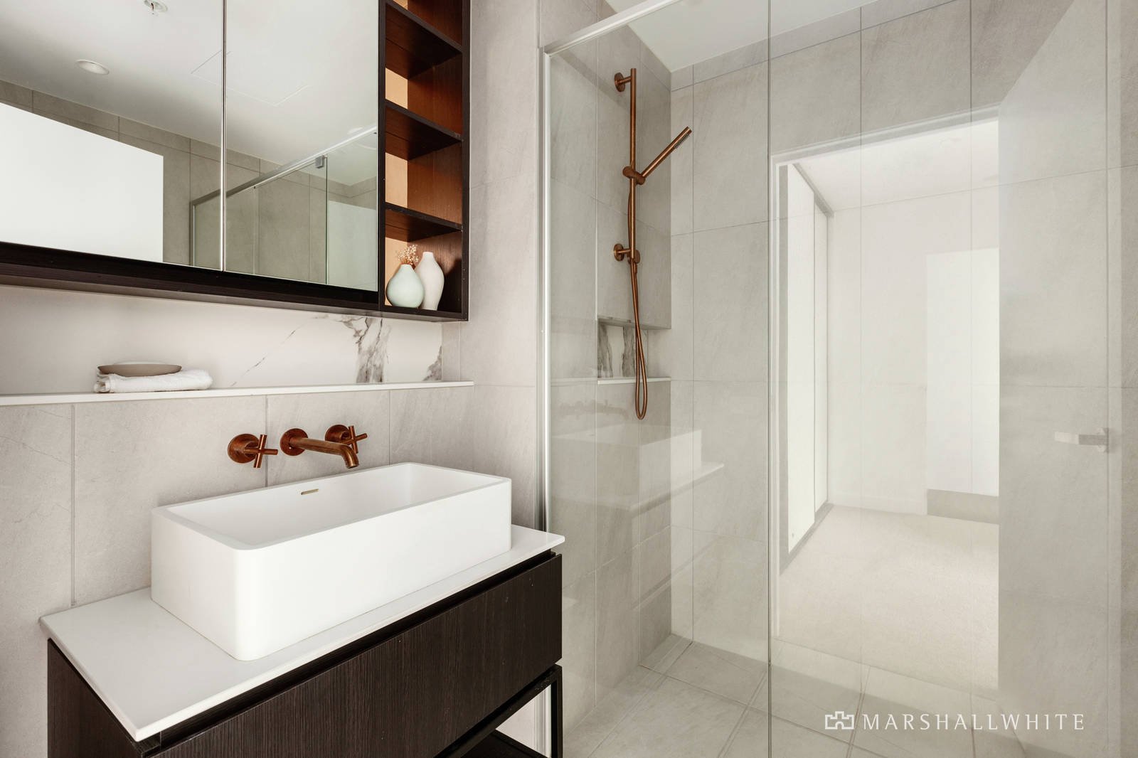 Walls of double-glazing create a seamless but tranquil connection to almost every icon of inner-Melbourne in an open plan, stone-topped kitchen / dining / living area that combines a suite of premium appliances with easy flow to the home's breath-taking eighth floor balcony. Meanwhile, the master suite is staggeringly large with walk-in robes, a study nook and fully-tiled ensuite in this remarkable apartment with built-in robes in the remaining bedrooms, a fully-tiled central bathroom, split system heating and air conditioning. Further highlights include secure basement parking, video entry, a gymnasium, yoga room, sauna and steam room, as well as a kitchen and dining area as part of the rooftop entertaining area.