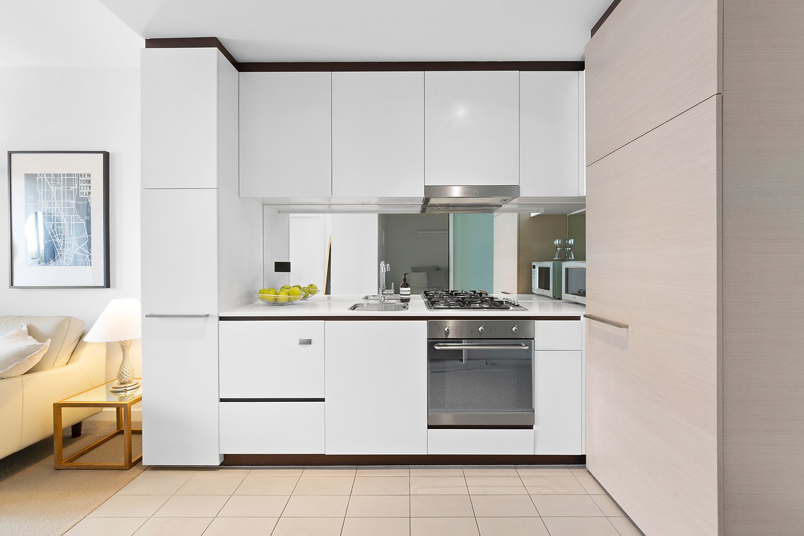 An evocative kitchen with cool clean lines combines stone bench tops with a SMEG oven, an integrated dishwasher, integrated refrigerator and mirrored splash backs as it overlooks open-plan living and a sheltered balcony where the views are sensational. Meanwhile, secure video entry, basement parking and fob-activated elevators offer wonderful reassurance and peace-of-mind in this home that also features a huge same-floor storage unit, as well as robes built-in to each bedroom, a European laundry in the bathroom and split system heating and cooling.