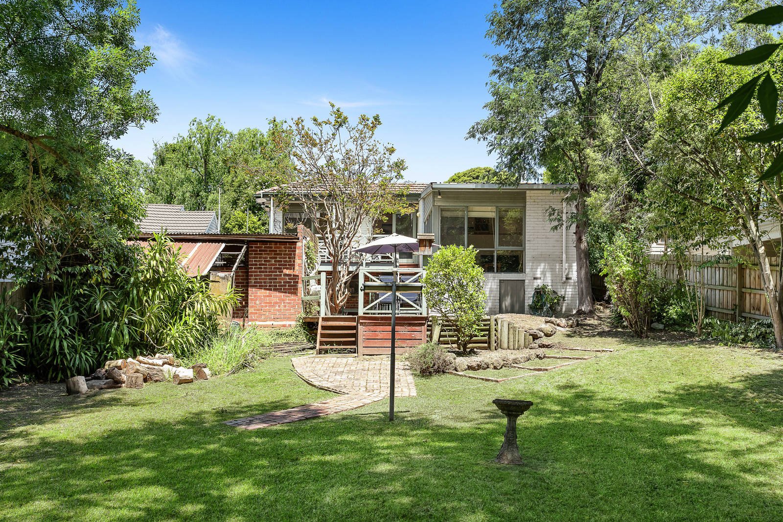 Timber floors flow through the entrance hall to a generous sitting, formal dining room and expansive living room. The spacious well equipped kitchen and casual dining area open to an elevated deck overlooking the exceptionally deep private north-facing garden. The main bedroom with ensuite and walk in robe complements two additional bedrooms with robes, a retreat/playroom or 4th bedroom, fitted study, and family bathroom.