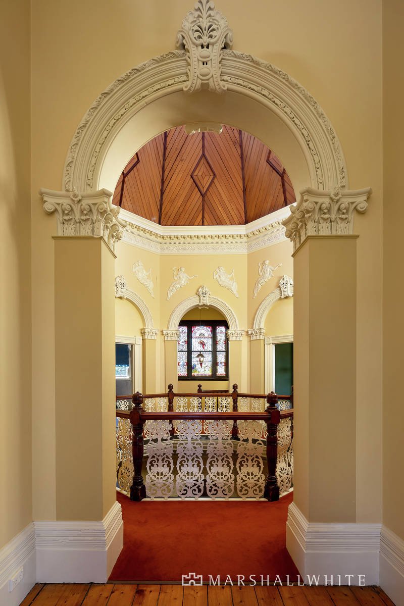 Now it can be yours, with grand-scale family spaciousness, extraordinary craftsmanship, and a tower where the bay views are incredible. Located midway between the beach, St Leonard's College and Haileybury, this Victorian Boom-era mansion is spectacular on so many levels. The light-filled interior spans out from a triple-height octagonal void adorned with ornate archways, a cast-iron balcony, tessellated key-tiled floor, and exquisite timber panelling and plasterwork. It's a fine introduction to a landmark home, featuring five large living and dining rooms, six bedrooms and a study, a wing of original staff quarters with potential to update, and a library. Kiora would have been the perfect beachside entertainer in its heyday, with space for dozens of guests to gather in the grand gallery, billiards room, and oversized dining room with an original butler's pantry and ornate fireplace.