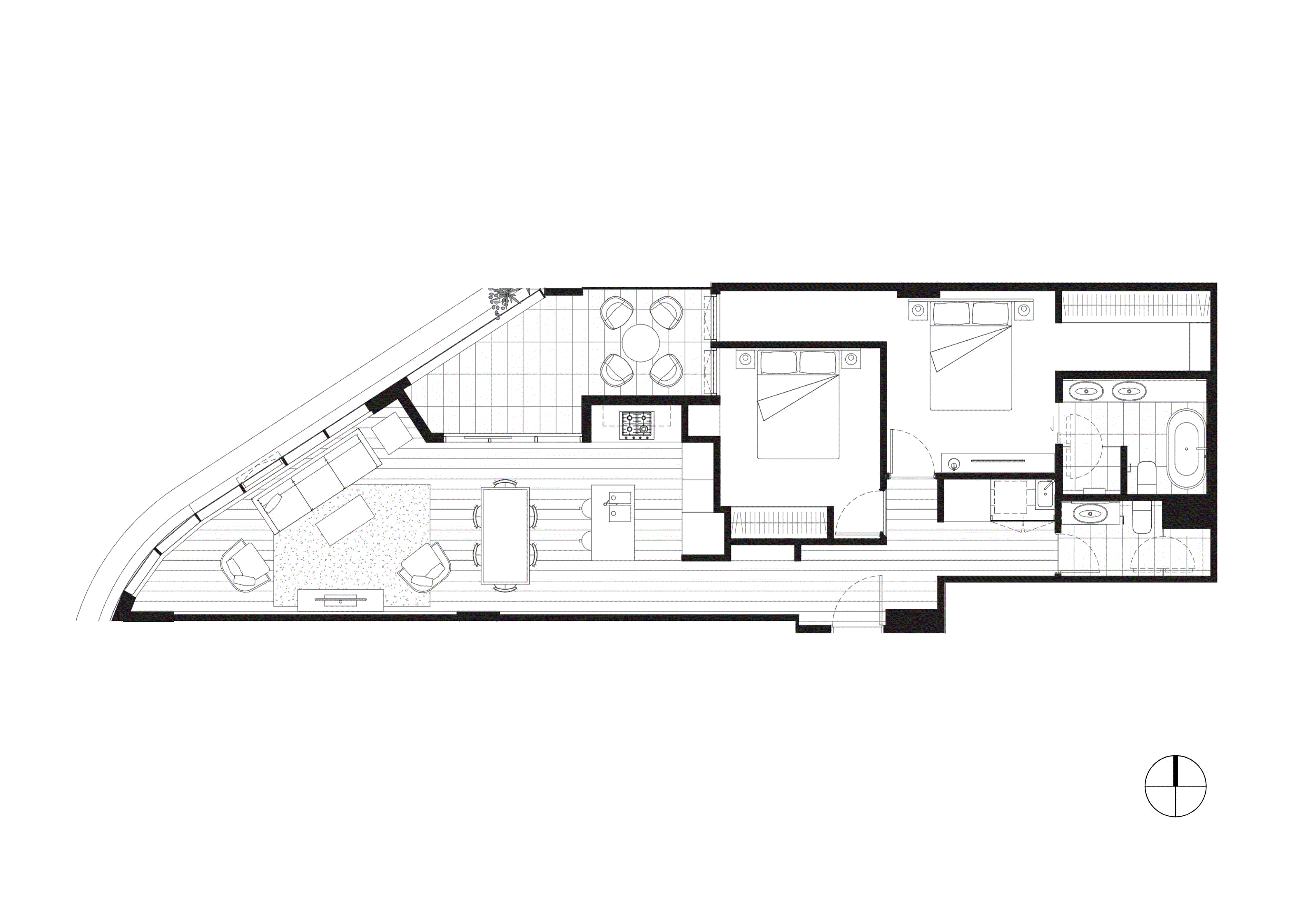 - Light-filled open-plan living with floor-to-ceiling glazing