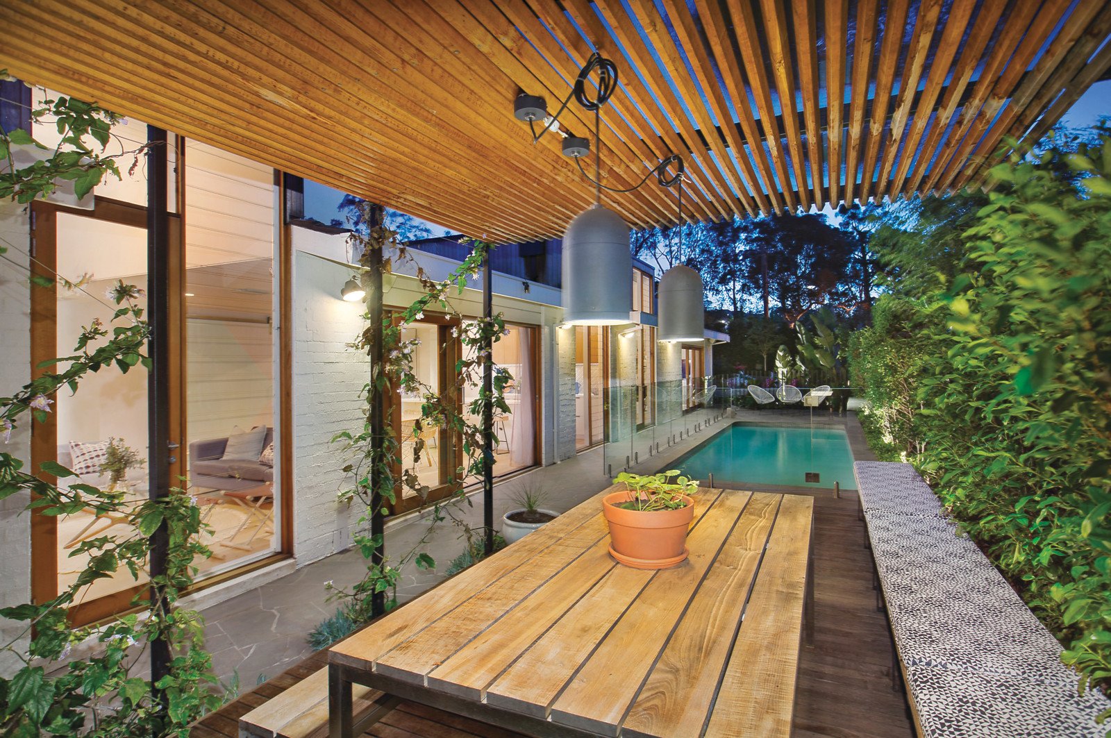 Oriented to face north, the interconnected living spaces feature wide oak floors, floor to ceiling glass, bespoke finishes and strategically placed voids that contribute to the wonderful sense of light and space. The generous sitting room with an open fireplace is adjacent to an evocative dining room. The ultra stylish Miele kitchen with white stone benches and butler's pantry overlooks the inviting family room with open fireplace. All the living areas open to the sensational north-facing garden with heated pool and to one side a covered al fresco dining pavilion and to the other a fabulous outdoor retreat set around a fire-pit. Cleverly arranged for privacy, the magnificent main bedroom and parents retreat/office with lavish marble en-suite and built in robes is set apart from a children's wing comprising three additional double bedrooms with built in robes and a designer bathroom.