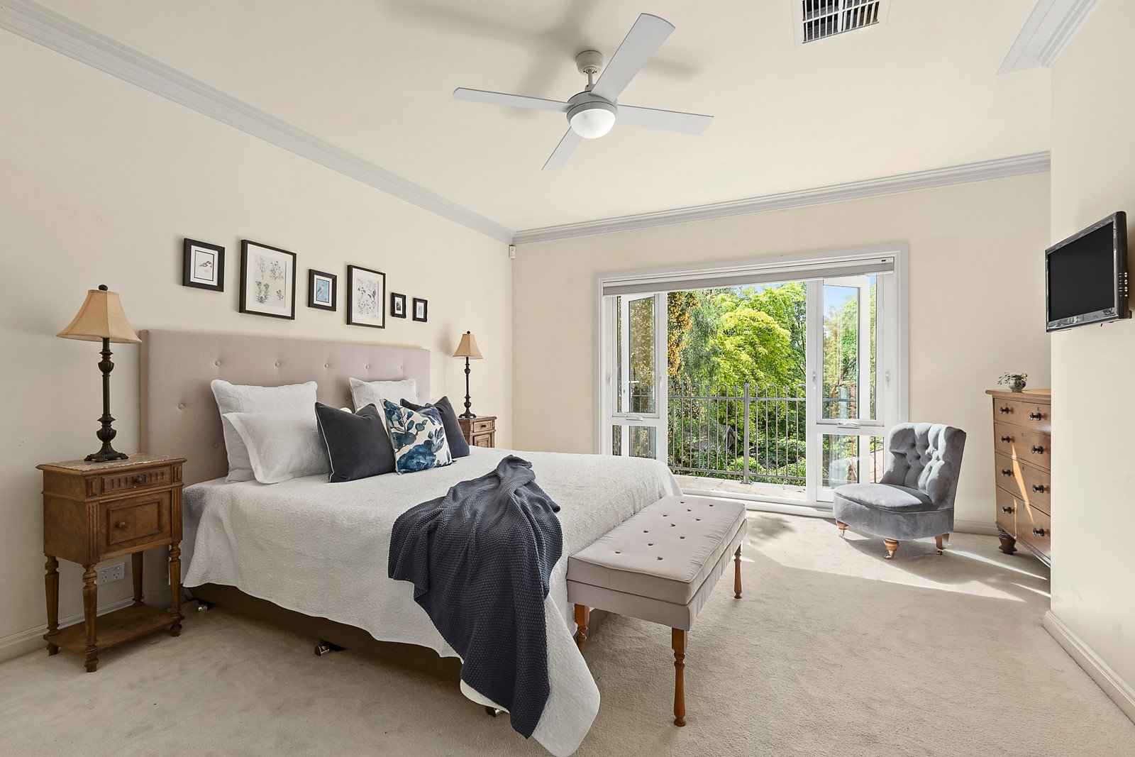 Upstairs the high ceilings and appealing design create a sense of space for the four double bedrooms, large marble bathroom, powder room and abundant storage. The large master bedroom features a balcony overlooking the gardens and park, walk in robe and a magnificent marble ensuite with spa.