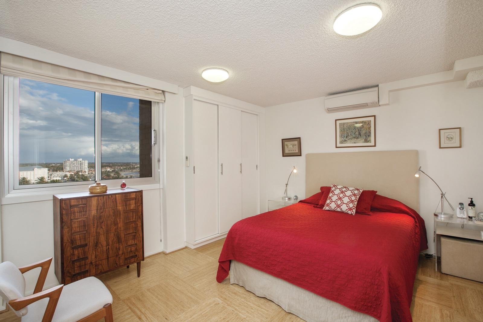A textural delight, bamboo floors flow through the wide entrance hall to an exceptionally spacious open plan living and entertaining area with inviting formal dining space and balcony overlooking the bay, beautifully proportioned living room with study area and a family/TV room opening to a second balcony. The stunning gourmet kitchen boasting stone benches, S/S appliances, breakfast bar and casual dining all command wonderful expansive views. The gorgeous main bedroom with designer mosaic tiled en-suite and his/hers built in robes is accompanied by a second generous bedroom with built in robes, a stylish mosaic tiled bathroom and additional powder-room.