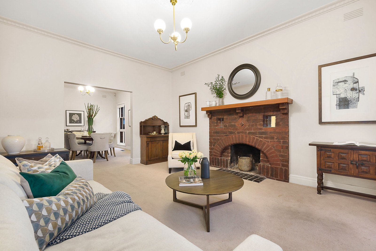 High ceilings preside over the wide entrance hall, gracious sitting room with a brick fireplace and elegant formal dining room. Timber floors flow through the gourmet stone kitchen and light-filled living and dining room opening to the deep private landscaped northeast garden with a large covered terrace. Well-zoned family accommodation comprises the main bedroom with built in robe and en suite and in a separate wing, three additional bedrooms with built in robes and a second bathroom.