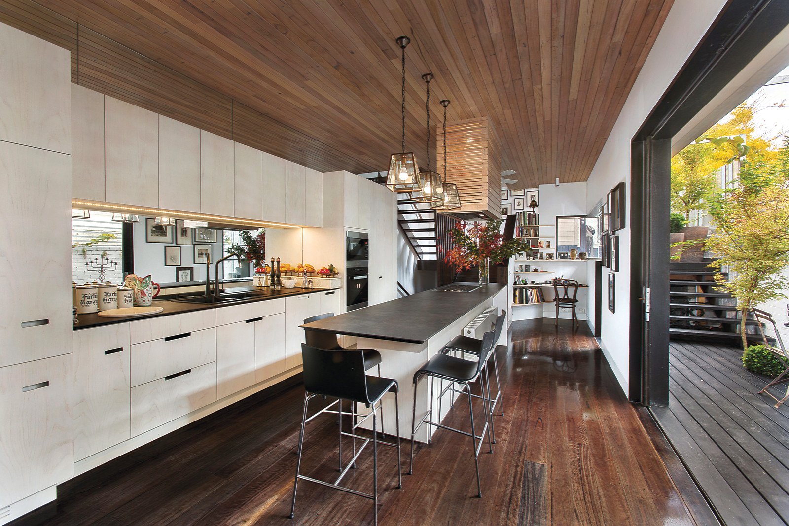 Ornate high ceilings and dark timber floors create a dramatic allure through the glorious sitting room with gas fireplace and beautiful dining room. Finished with limed timber joinery, integrated appliances and the latest Italian ceramic benches, the designer kitchen opens out to a private north-facing decked courtyard. Two gorgeous light-filled bedrooms (one enjoying city views) each feature a stylish bathroom and built in robes.
