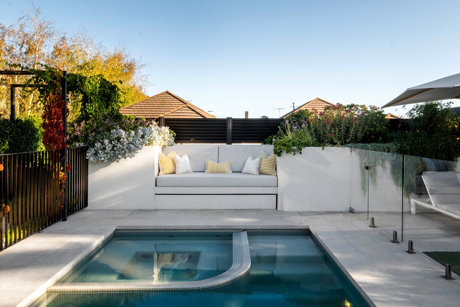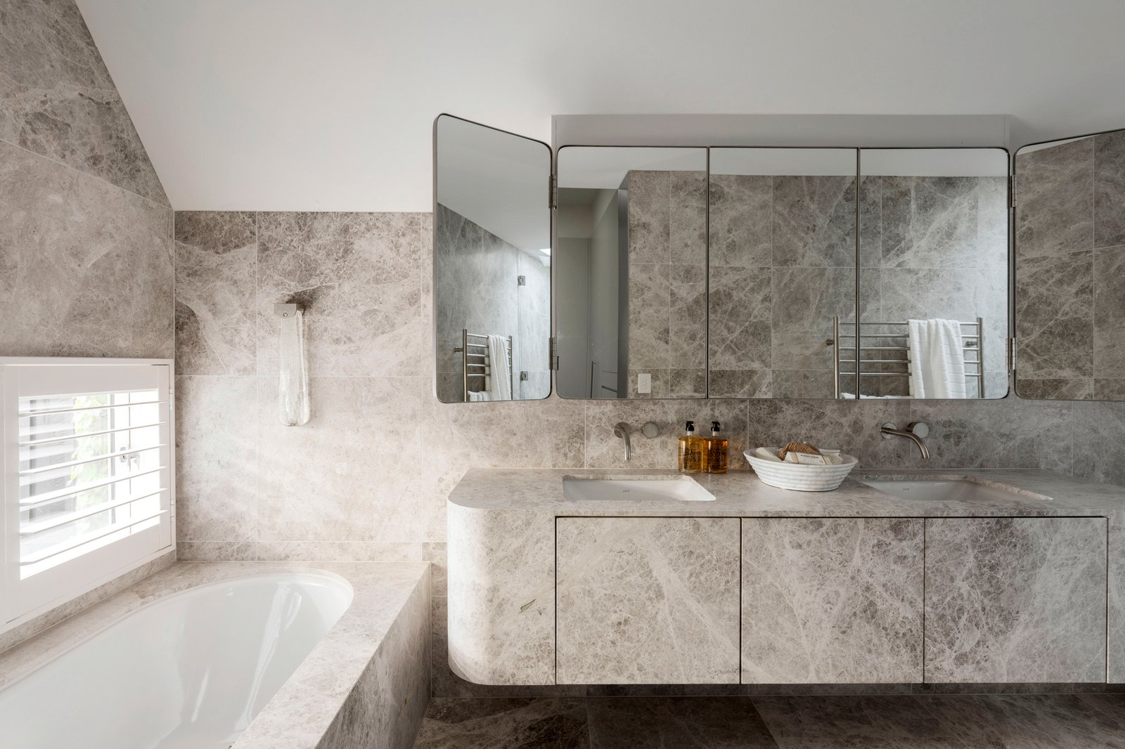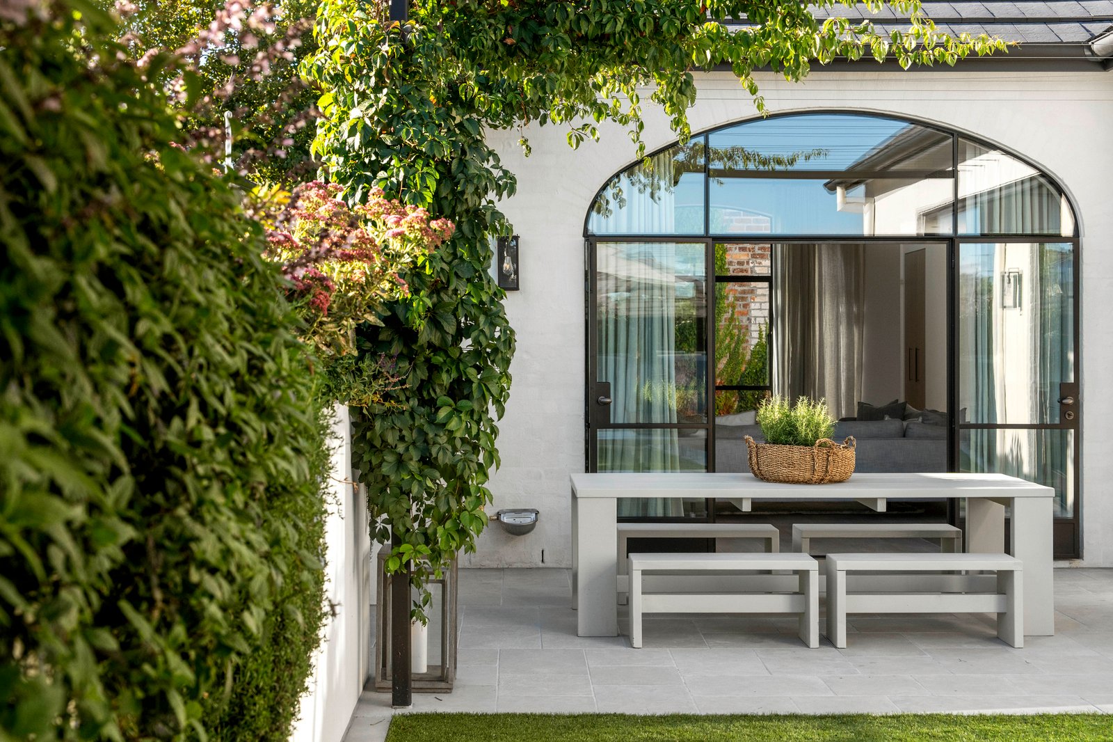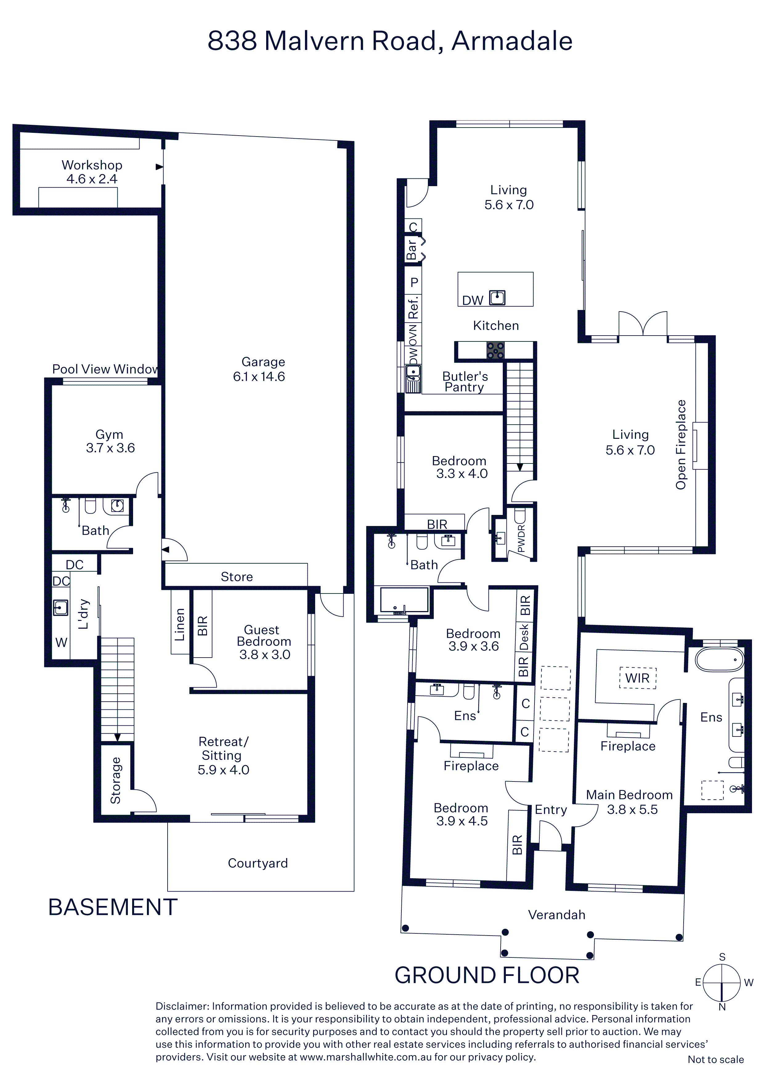 Behind an utterly captivating high walled garden, the classic black and white marble verandah reveals interior spaces where ornate original features blend seamlessly with state-of-the-art design, bespoke joinery and an abundance of unique marbles, stone and handmade imported tiles. The sky-lit arched hallway with extra wide George Fethers oak floors underfoot flows through to the opulent main bedroom with pressed metal ceiling, marble firplace, deluxe dressing room and lavish Tundra marble en suite. There is also a second king-sized bedroom with fireplace, robes and marble en suite, two additional robed bedrooms and a marble bathroom. Bathed in year-round natural light, the expansive living room with an open fire and vaulted ceiling opens through bronze framed doors to a fabulous Virginia Creeper covered limestone terrace overlooking the landscaped private garden and picturesque solar/gas heated pool and spa. Featuring limestone floors in a French pattern, a vaulted ceiling and fitted bar, the stunning dining area and bespoke kitchen appointed with Brazilian quartzite benches, Miele appliances, integrated fridge/freezer and a full butler’s pantry also open to the garden and pool. On the lower level, polished concrete floors flow through a gym with an underwater window to the pool, a 5th bedroom or home office with robes, stylish bathroom and generous media room opening to an idyllic leafy courtyard. It’s a versatile space for adult children, in-laws or guests.