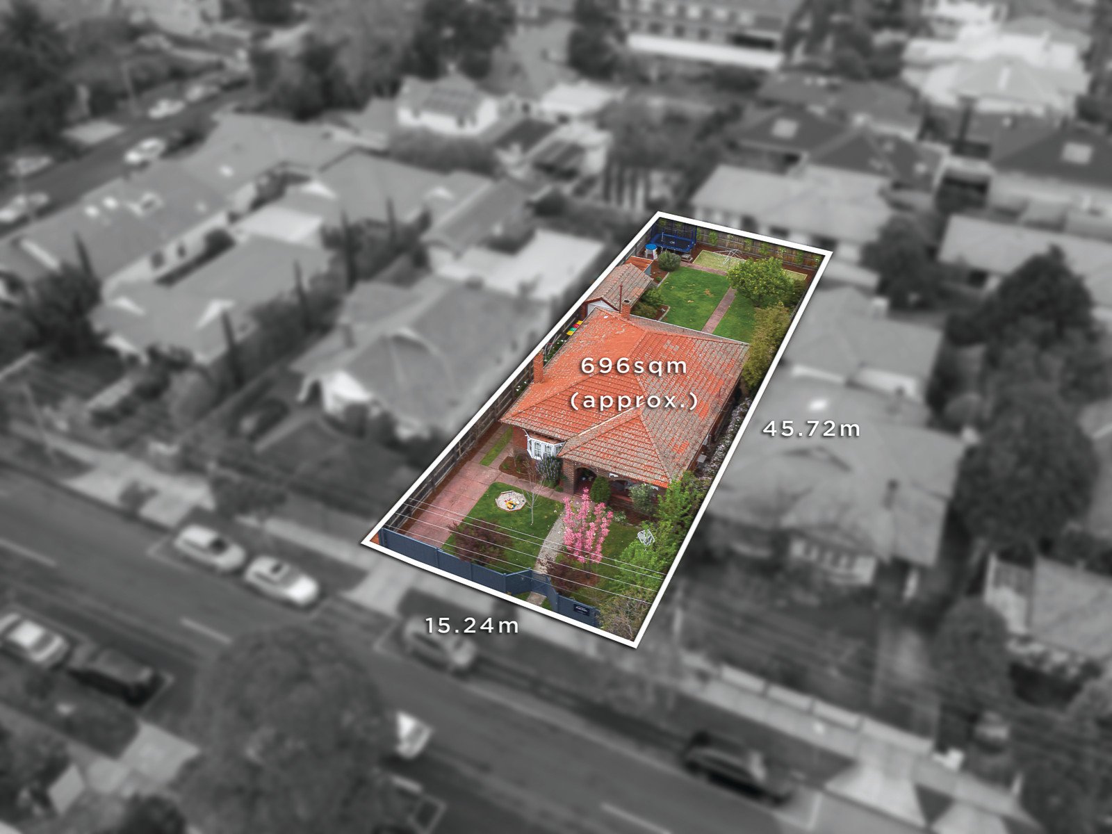 Sited on a generous 696 sqm land, here is a 3-4 bedroom family home, brimming with character and vintage personality, offering the ideal setting to simply move in and enjoy. Retaining period details with updated proportions is this immaculately presented brick family home Existing layout includes entrance hallway, three sizeable bedrooms, study/4th bedroom, separate living and dining, a modern well-appointed kitchen, and central bathroom. Outside a generous rear garden provides the perfect playing field for young players. Alternatively plans and approved permits are on offer for 2 outstanding double storey townhouses, making the most of this exceptional lifestyle location.