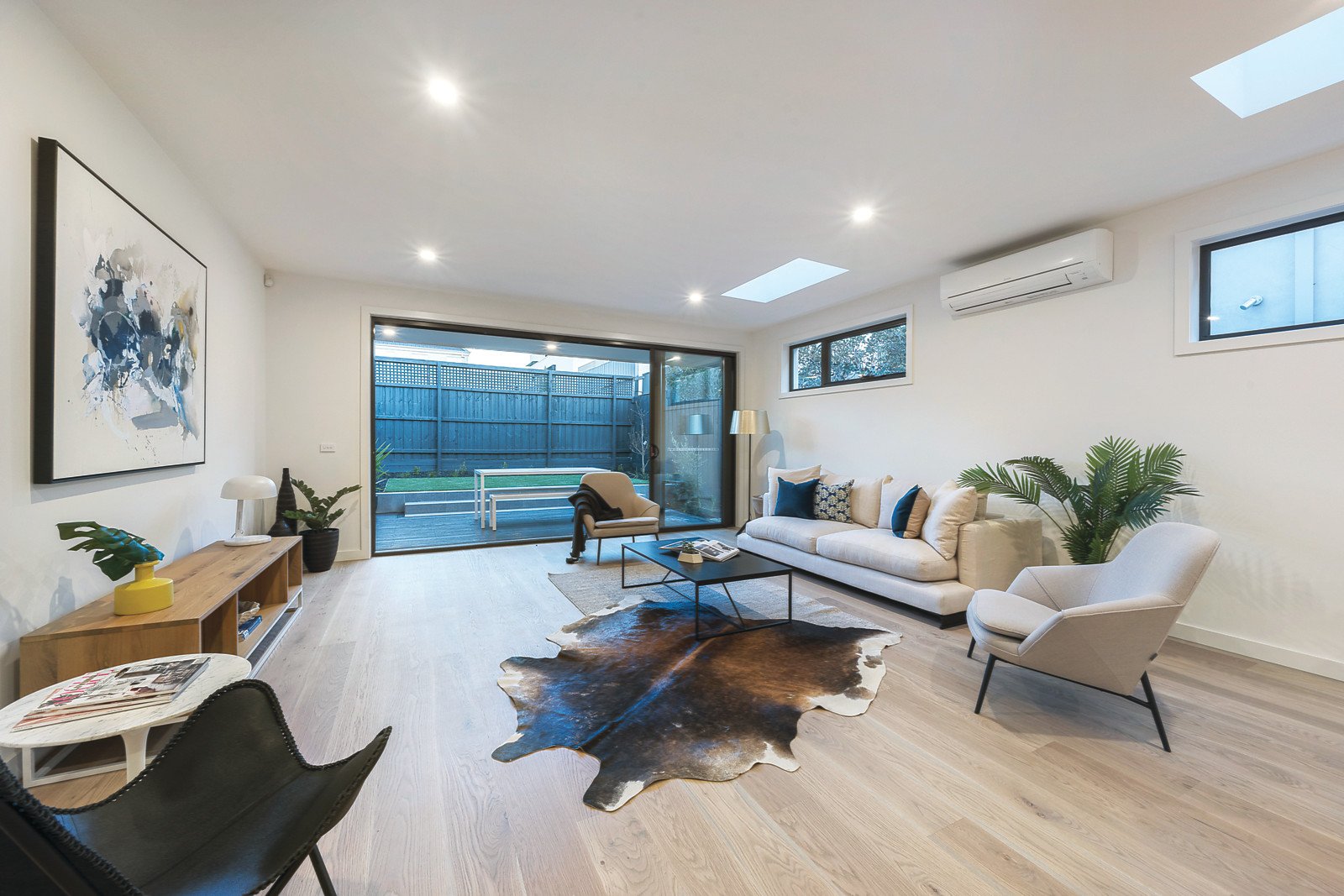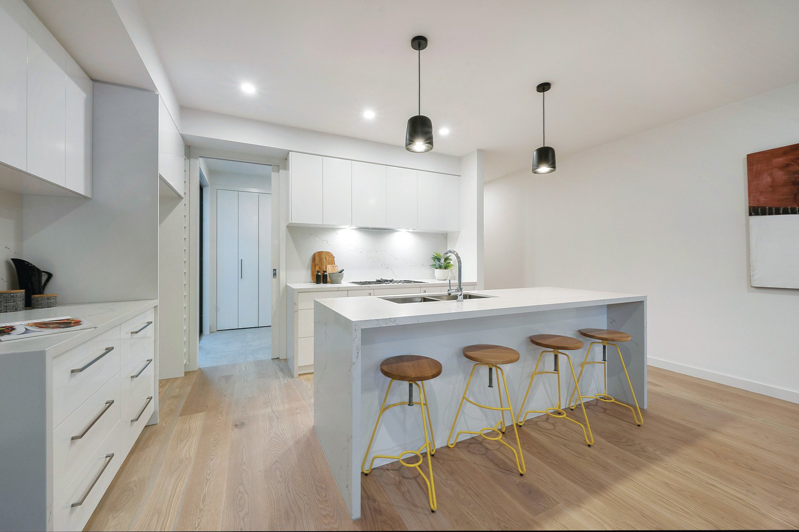 This stunning new contemporary residence, highlighted by an eye-catching façade and luxurious appointments, encapsulates all that is desirable in this style of two-storey home blending the latest contemporary design with sublime wide European oak floorboards and a crisp white decor imbued in a flowing floor-plan and spacious light-filled interior.