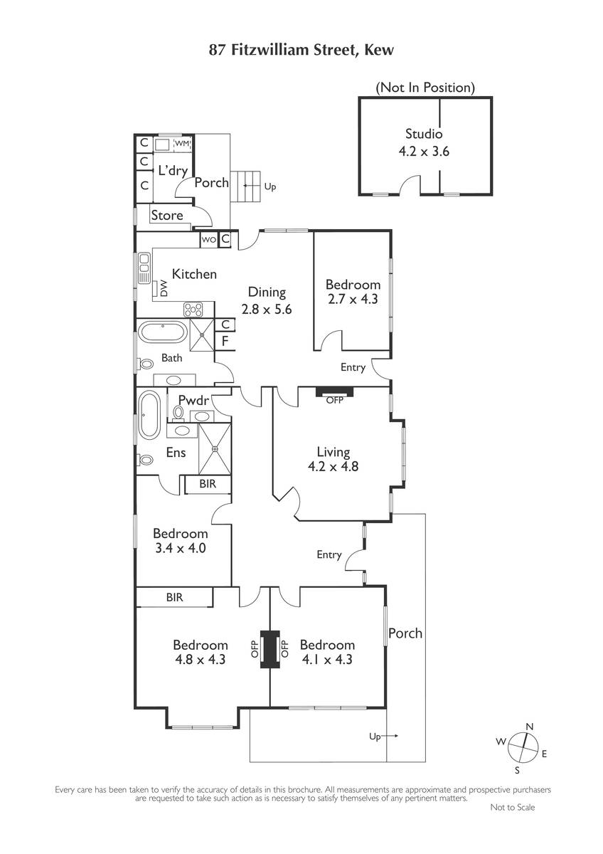 Meanwhile, the bedrooms are all generously-sized and naturally lit - the master with a luxurious, fully-tiled ensuite in which the bath is independent to shower - plus there are built-in robes in two bedrooms and another two fireplaces. Importantly, a rear studio can be utilised as a home office but could also serve as a fifth bedroom/teen retreat if needed.
