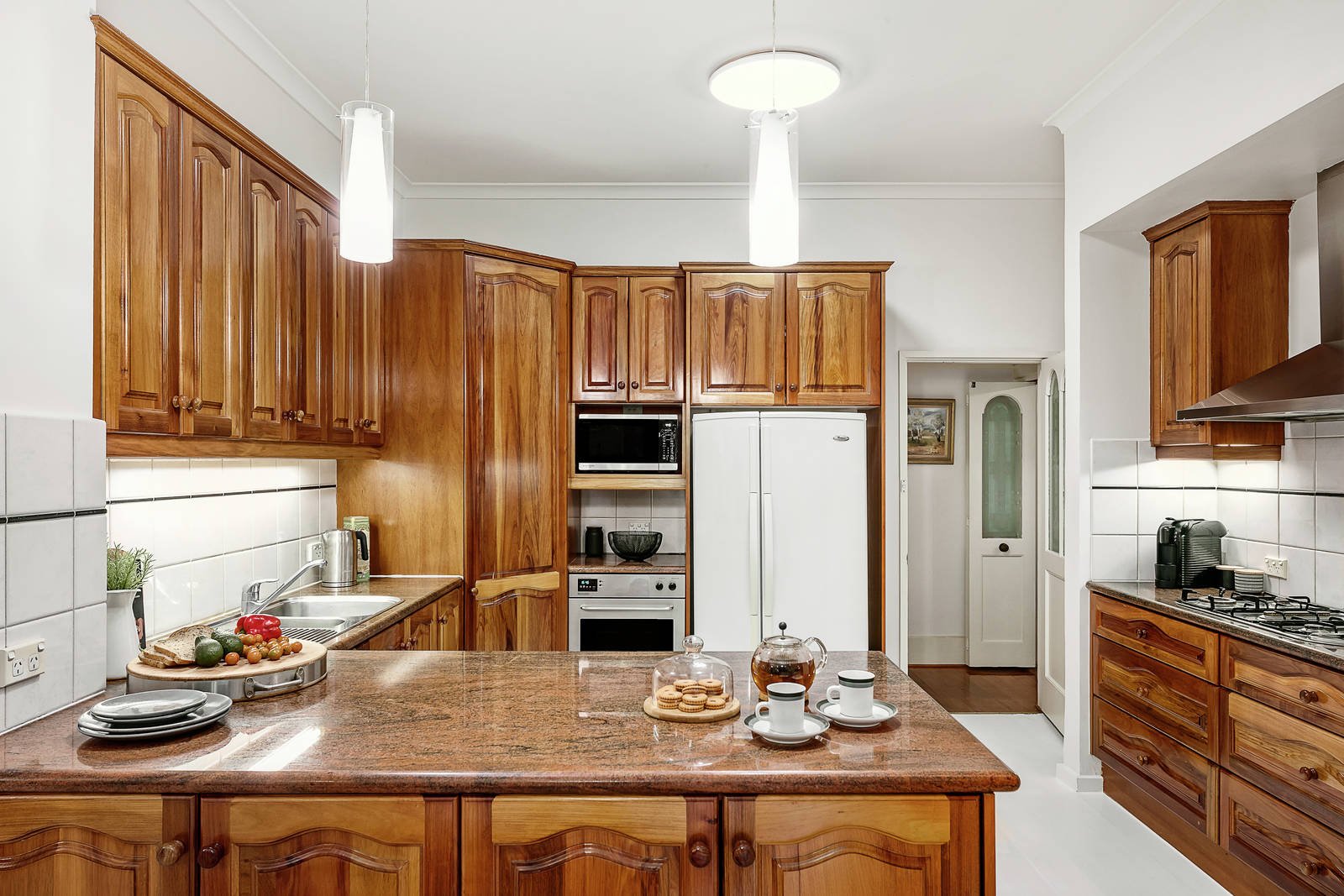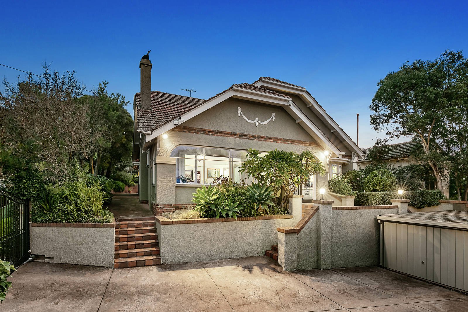 Number 88 Kilby Road is a lucky address. Gracing a generous corner allotment of 669sqm approx. in an elevated position, privately behind a secure high brick wall - and electric gates this impressive family home will be a mecca for lovers of Art Deco styling and internal decor. Introduced by a sun-drenched northern verandah the interior features polished timber floors, decorative ceilings, coloured leadlight glass and proportions typical of its era. A wide entrance hall flows to a formal sitting room interconnecting with a dining room and informal family living with bar; plus a large informal dining room incorporating a stylish granite and timber kitchen equipped with Asko and Blanco stainless steel appliances and laundry leading to a paved alfresco area. All providing loads of room for both indoor and outdoor entertaining to be enjoyed with family and friends. Complemented by four bedrooms or three plus a study, downstairs main with a bay window, BIRs and classic black and white themed ensuite with a spa bath. Whilst a further two bedrooms with BIRs are located upstairs with a roomy family retreat and bathroom.