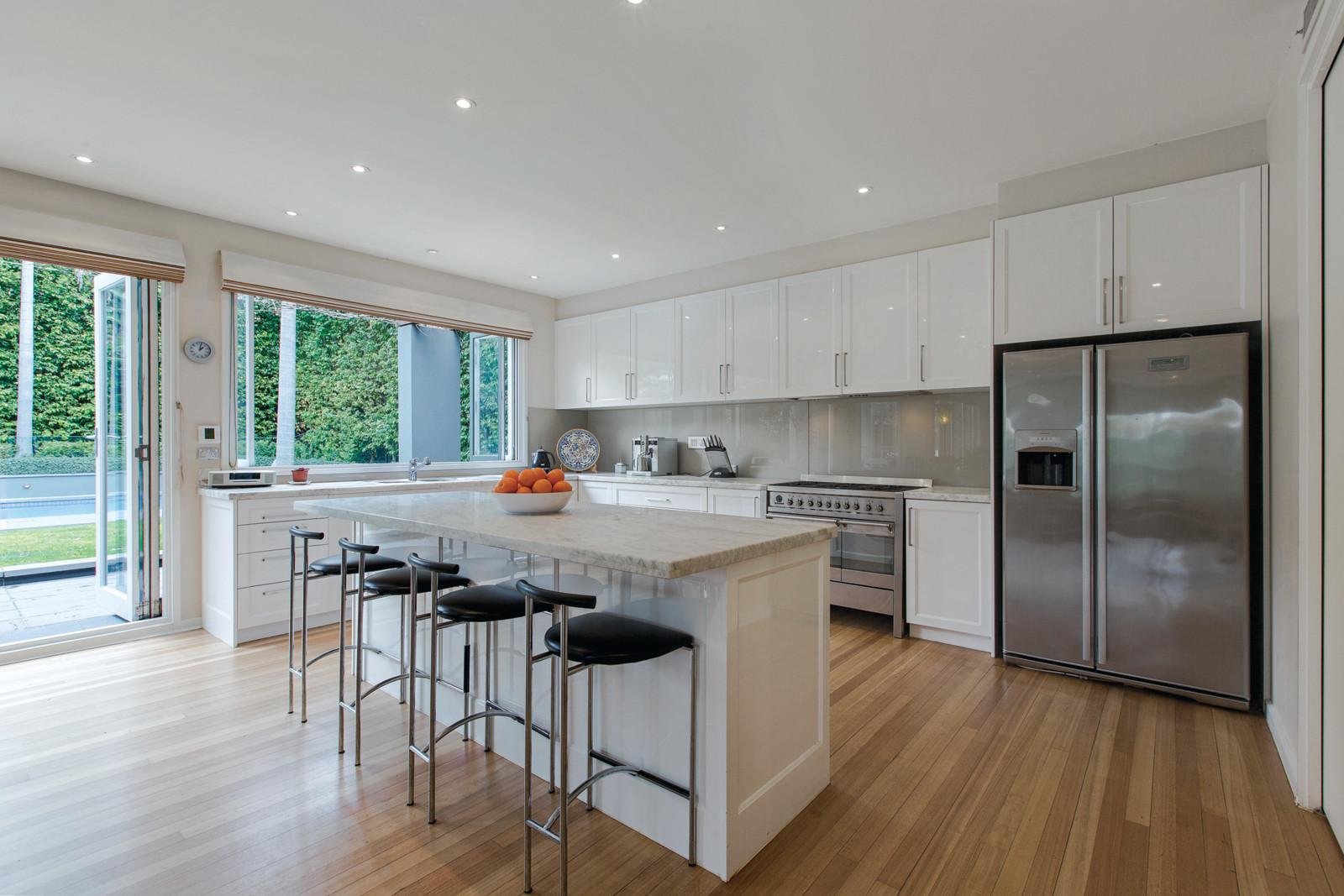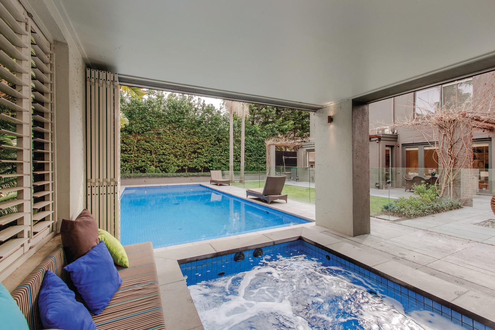 A glorious parquetry foyer introduces elegant formal dining, gracious sitting room with gas fireplace and study all enjoying picture window outlooks to the beautiful garden. The sublime entertainer's kitchen featuring a large Smeg oven, marble benches and butler's pantry and superbly proportioned living and dining room open through a series of bi-fold doors to a picturesque totally private garden surrounded by soaring palm trees and boasting bluestone paving, a built in BBQ entertaining area, stunning solar heated pool and a fabulous year round alfresco spa pavilion surrounded by banquet seating and bi-fold louvre doors. Generous bedroom accommodation upstairs includes a captivating main bedroom with walk in robes and designer en-suite, four additional double bedrooms with robes and a stylish bathroom.