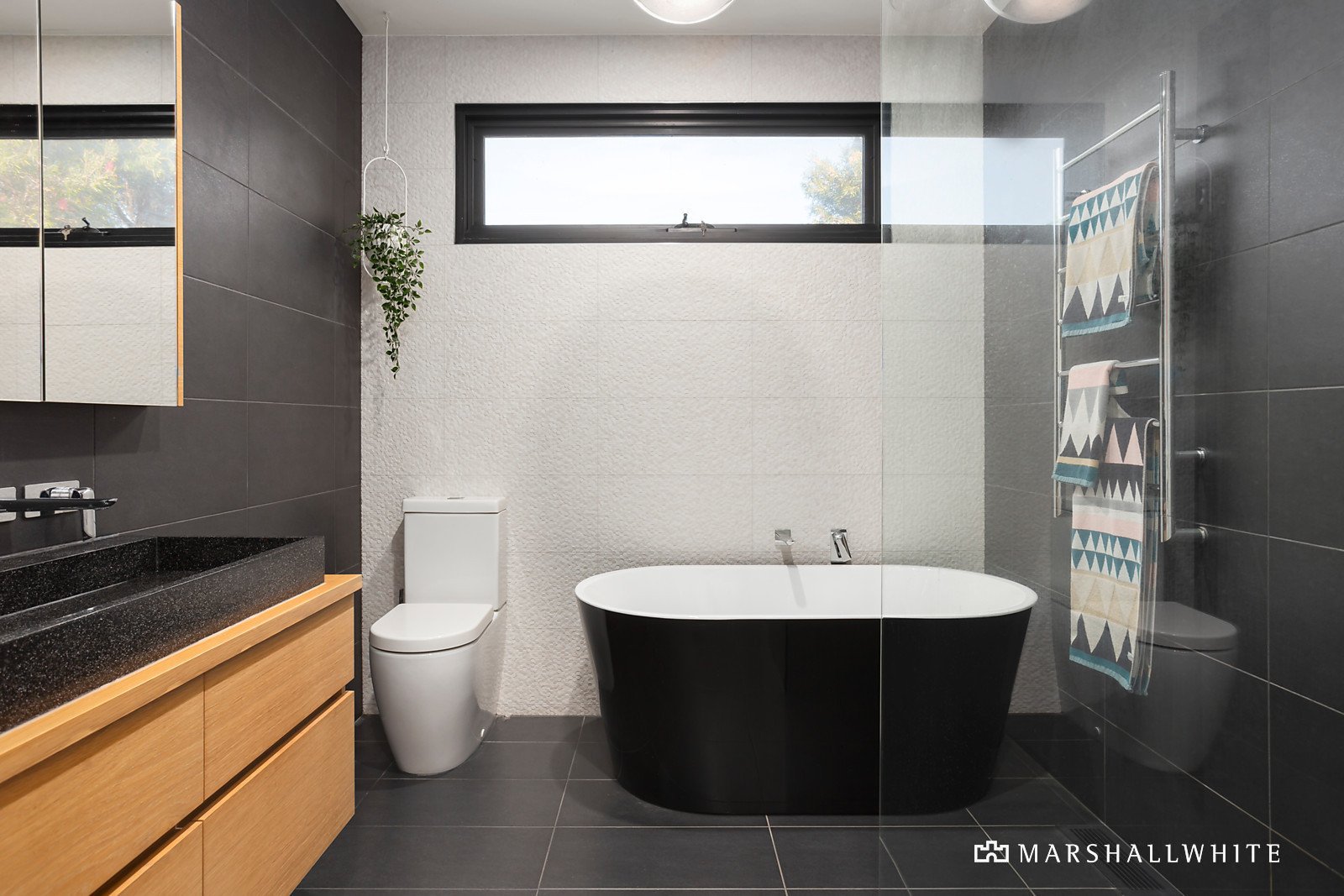 Lime oak timber floors flow through the wide central hall and generous open plan living and dining room where extra high ceilings amplify the sense of space. Served by a sleek gourmet kitchen appointed with European appliances and white waterfall stone benches, the living area opens out to a large undercover deck perfect for al fresco dining overlooking the private garden. The gorgeous main bedroom with ample robes and stylish en suite complements two additional double bedrooms with robes and desks, a versatile lounge or a 4th bedroom and the stunning family bathroom with freestanding bath.